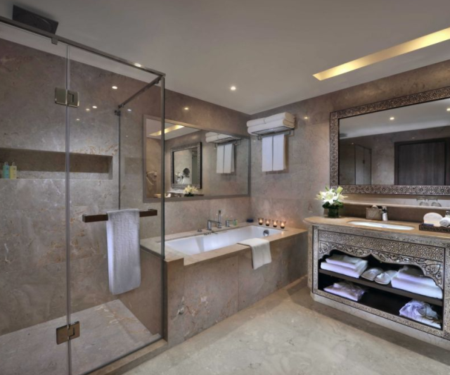ванная комната c душем или ванной, фен, кондиционер, спутниковое ТВ, телефон, мини-бар, сейф, балкон или терраса, электрический чайник, набор для приготовления чая и кофе, утюг и гладильная доска (по запросу), халаты и тапочки, wi-fi
