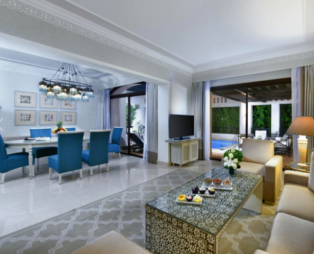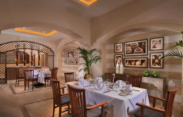 Рестораны: Zohreya (в лобби, открыт на завтрак 07-00/10-30, обед 12-30/15-00, ужин 18-30/21-00), Rihana (сезонный ресторан, открыт на завтрак, обед, ужин), Amoura (ресторан у бассейна, открыт на завтрак, обед и для курения кальяна с 16-00 до 22-30), японский ресторан Hama (ужин с 18-30 до 20-30), La Maison - ресторан средиземноморской кухни (ужин с 18-30 до 20-30), Sanafir ресторан и бар на пляже (напитки с 10-00 до 17-00, закуски с 12-00 до 16-00, ужин с 18-30 до 22-30), итальянский ресторан Limoni (с 18-30 до 22-30)