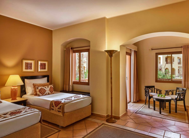 Deluxe Pool view (34 м2)– комфортабельный номер с видом на бассейн и гостиной зоной. Есть номера с двуспальной кроватью либо с двумя односпальными кроватями. Максимальное размещение 3 взр.