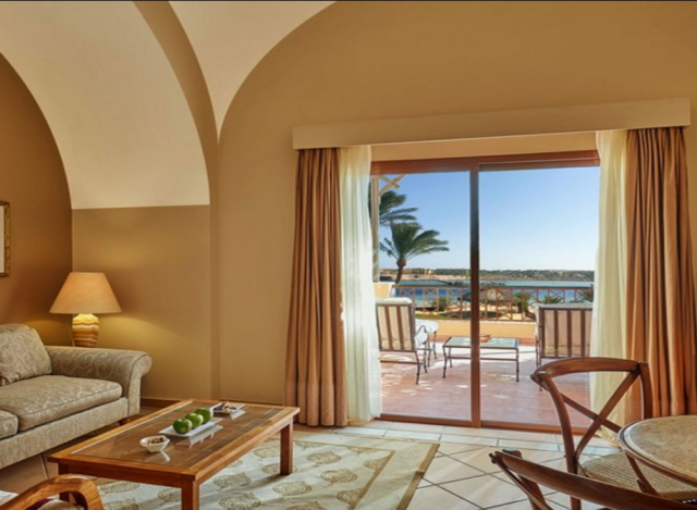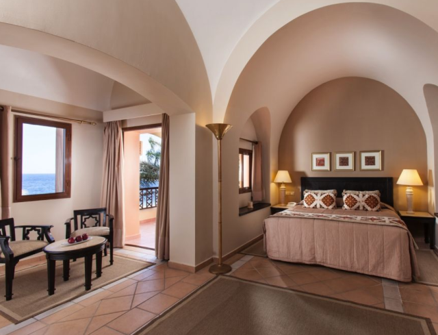 Junior suite (42 м2) – комфортабельный двухкомнатный номер: спальня и гостиная с видом либо на бассейн либо на море. Максимальное размещение 2 взр.