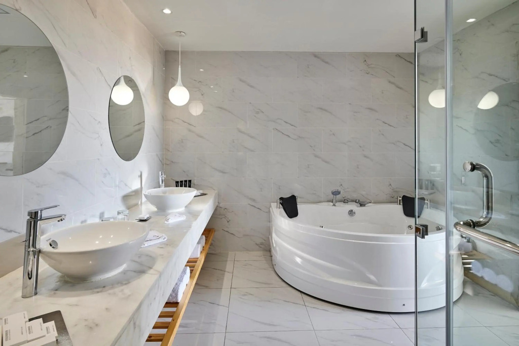 Номер уютно обставлен и оснащён необходимым, чтобы отдохнуть после долгого и насыщенного дня. Имеются душ, телевизор, мини-бар и халат. Оснащение зависит от выбранной категории номера.