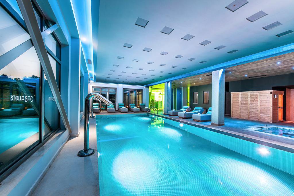 Отель Stella Palace с 2 плавательными бассейнами в виде лагун, 3 детскими бассейнами и 2 теннисными кортами находится на частной части пляжа Аналипси. Его элегантные номера и люксы окружены высокими пальмами и ландшафтными садами.