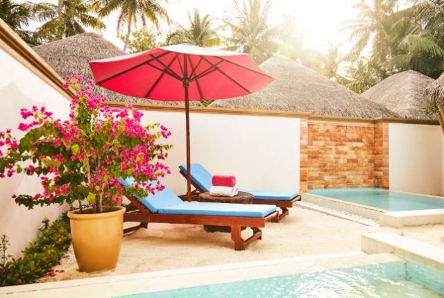 18 Deluxe Beach Villa (76 м2) вилла на берегу, идентичны номерам Beach Villa, единственное отличие – традиционная мальдивская свинг-качель в саду. Максимальное размещение: 2 взрослых и 2 детей до 12 лет или 3 взрослых