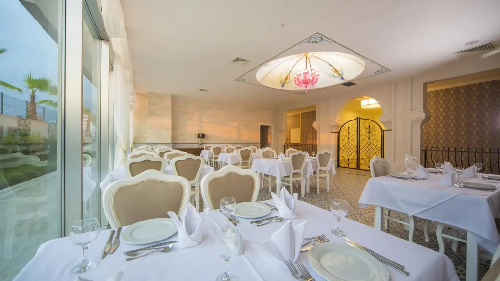 На курорте:Для гостей работает бар. Время вспомнить о хлебе насущном! Для гостей работает ресторан. Бесплатный Wi-Fi на территории поможет всегда оставаться на связи. Специально для автопутешественников организована бесплатная парковка.; Среди услуг для красоты и здоровья — массажный кабинет, сауна и спа-центр. Любителям спорта подготовили фитнес-центр. Скучно не будет, ведь на курорте к услугам отдыхающих пинг-понг. Любители водных процедур оценят бассейн, аквапарк и открытый бассейн.; Можно организовать деловую встречу, переговоры и даже собеседование. Для этого предусмотрены конференц-зал и оборудование для встреч и презентаций. Для простоты передвижения возможна организация трансфера. Удобно для гостей с ограниченными возможностями: на верхние этажи гостей поднимает лифт. Гостям доступны и другие услуги. Например, прачечная, химчистка, гладильные услуги, прокат автомобилей и сейф.; Персонал курорта говорит на английском, немецком и русском.