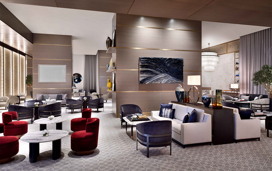 Спальня с кроватью king и встроенным шкафом, отдельная зона с туалетным столиком, просторная гостиная с обеденной зоной, балкон с видом на город. Завтрак включен. Эксклюзивный доступ в Club Lounge