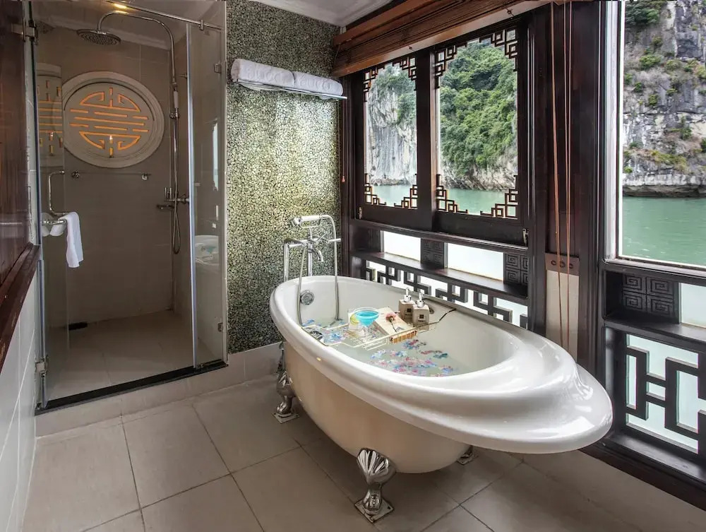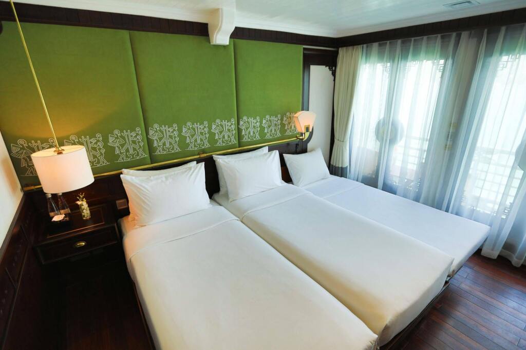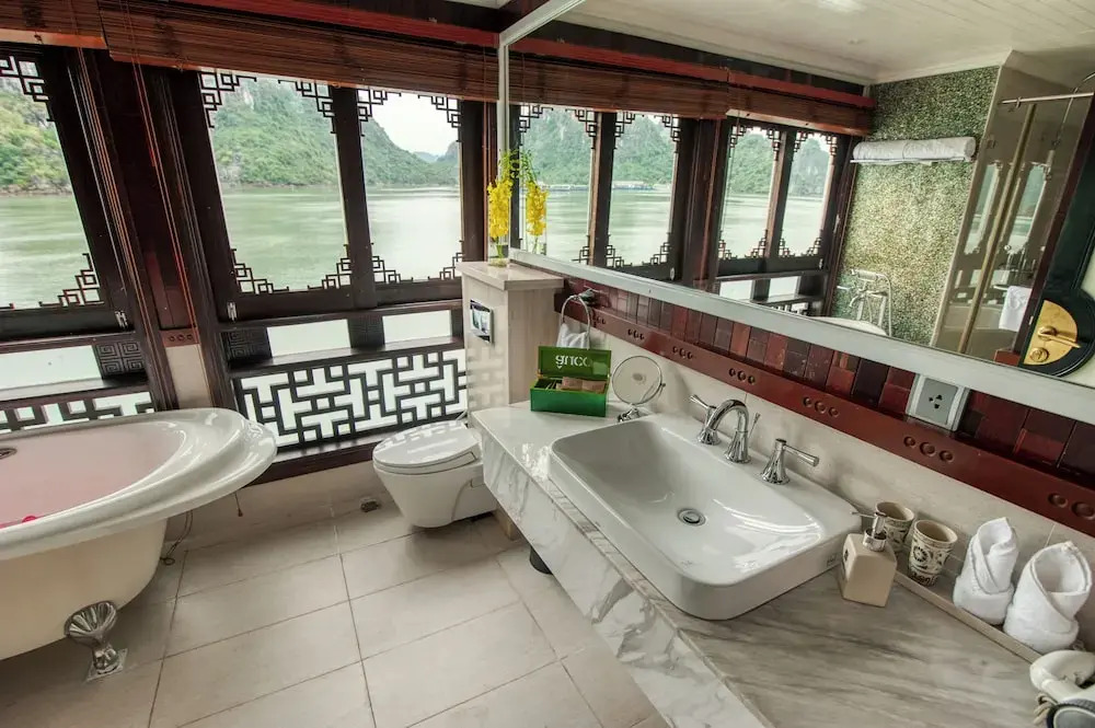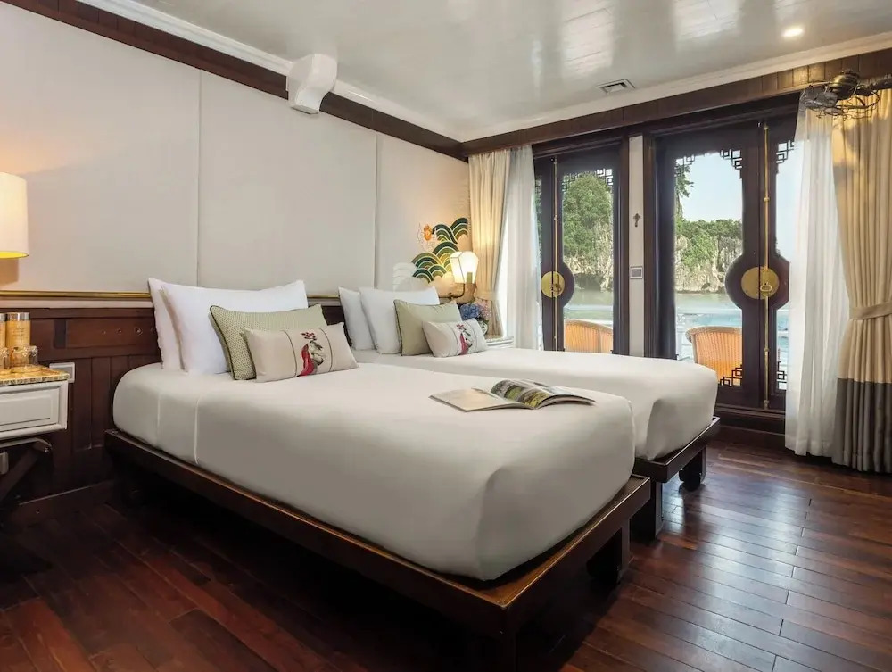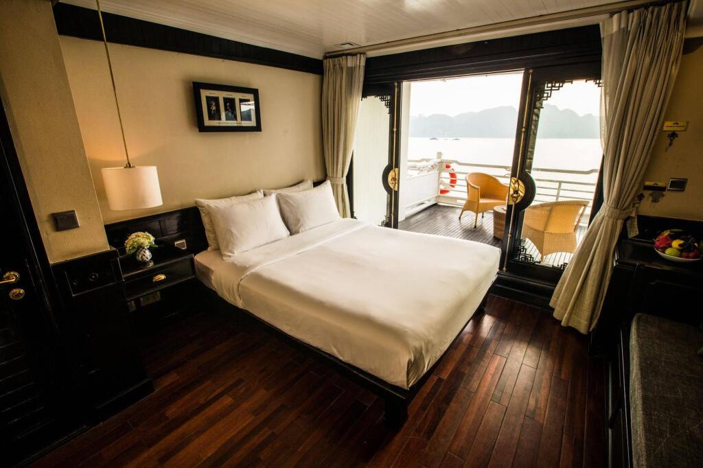 Дополнительно:Номера на этом круизном судне бронируются минимум на 2 ночи.; Пожалуйста, обратите внимание, что каюту необходимо забронировать как минимум за 24 часа до заезда. В момент бронирования гостям следует указать полное имя, дату рождения, гражданство, номер паспорта и срок действия визы. При регистрации заезда на борту судна вам необходимо предъявить действительный паспорт или удостоверение личности.; Обратите внимание, что трансфер на автобусе из Ханоя до Халонга не входит в стоимость проживания. Судно отчаливает ровно в 12:00 из порта Хонгай, что в заливе Халонг. Если вам необходим транспорт, пожалуйста, свяжитесь с администрацией круизного судна напрямую. Контактная информация указана в подтверждении бронирования.