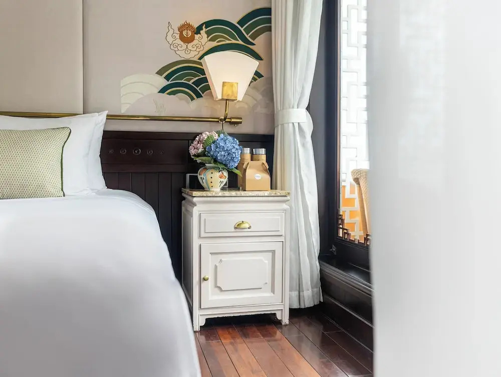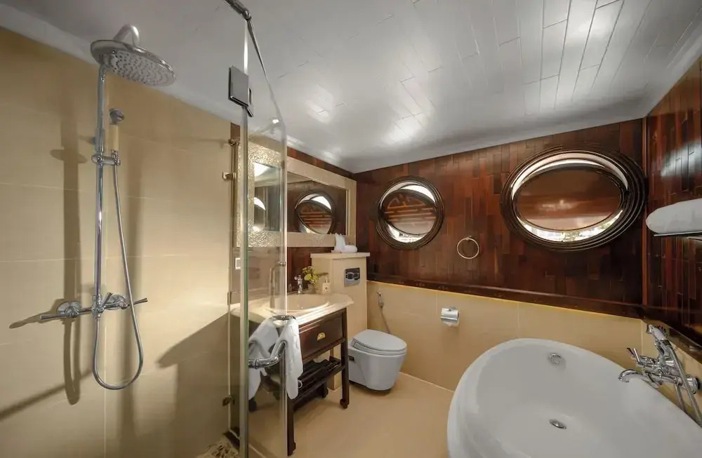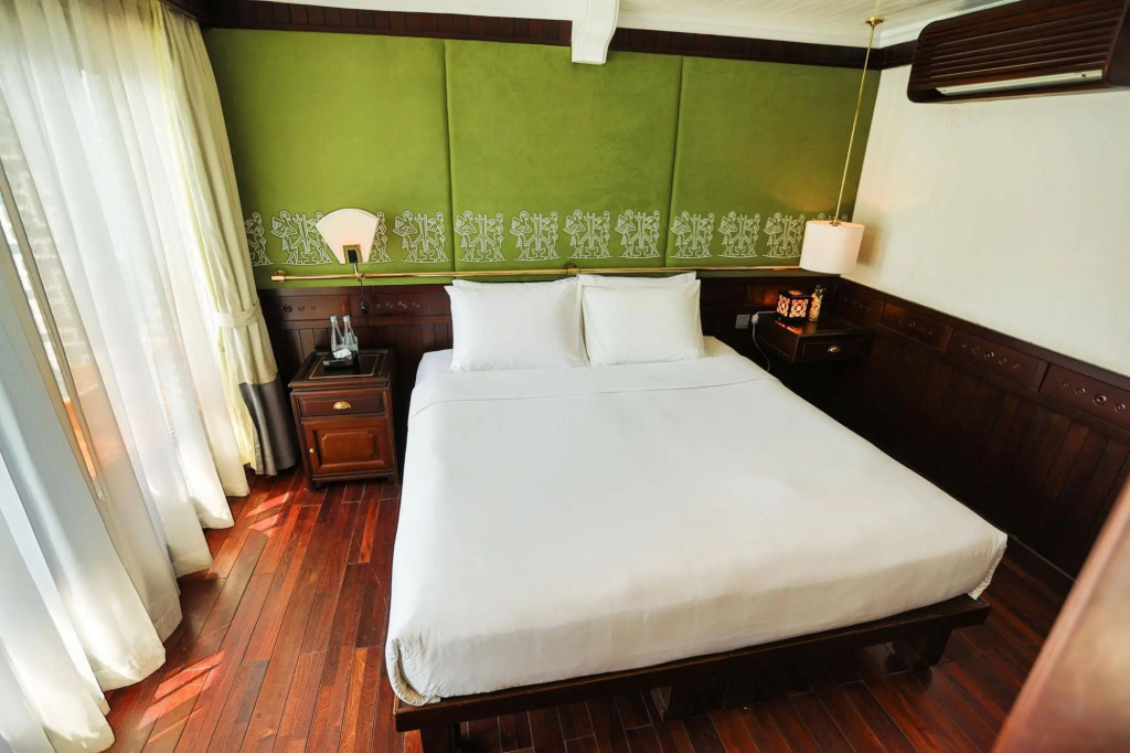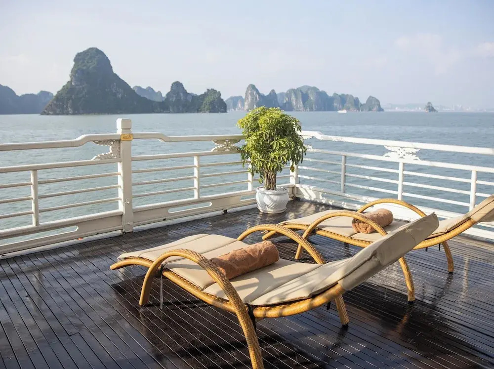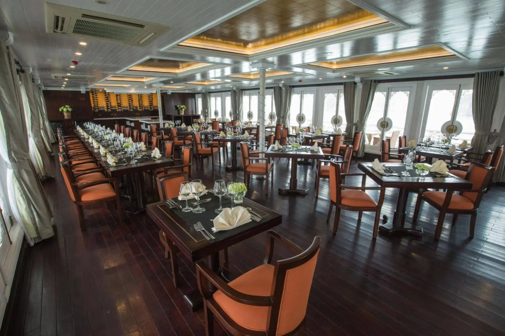 Дополнительно:Номера на этом круизном судне бронируются минимум на 2 ночи.; Пожалуйста, обратите внимание, что каюту необходимо забронировать как минимум за 24 часа до заезда. В момент бронирования гостям следует указать полное имя, дату рождения, гражданство, номер паспорта и срок действия визы. При регистрации заезда на борту судна вам необходимо предъявить действительный паспорт или удостоверение личности.; Обратите внимание, что трансфер на автобусе из Ханоя до Халонга не входит в стоимость проживания. Судно отчаливает ровно в 12:00 из порта Хонгай, что в заливе Халонг. Если вам необходим транспорт, пожалуйста, свяжитесь с администрацией круизного судна напрямую. Контактная информация указана в подтверждении бронирования.