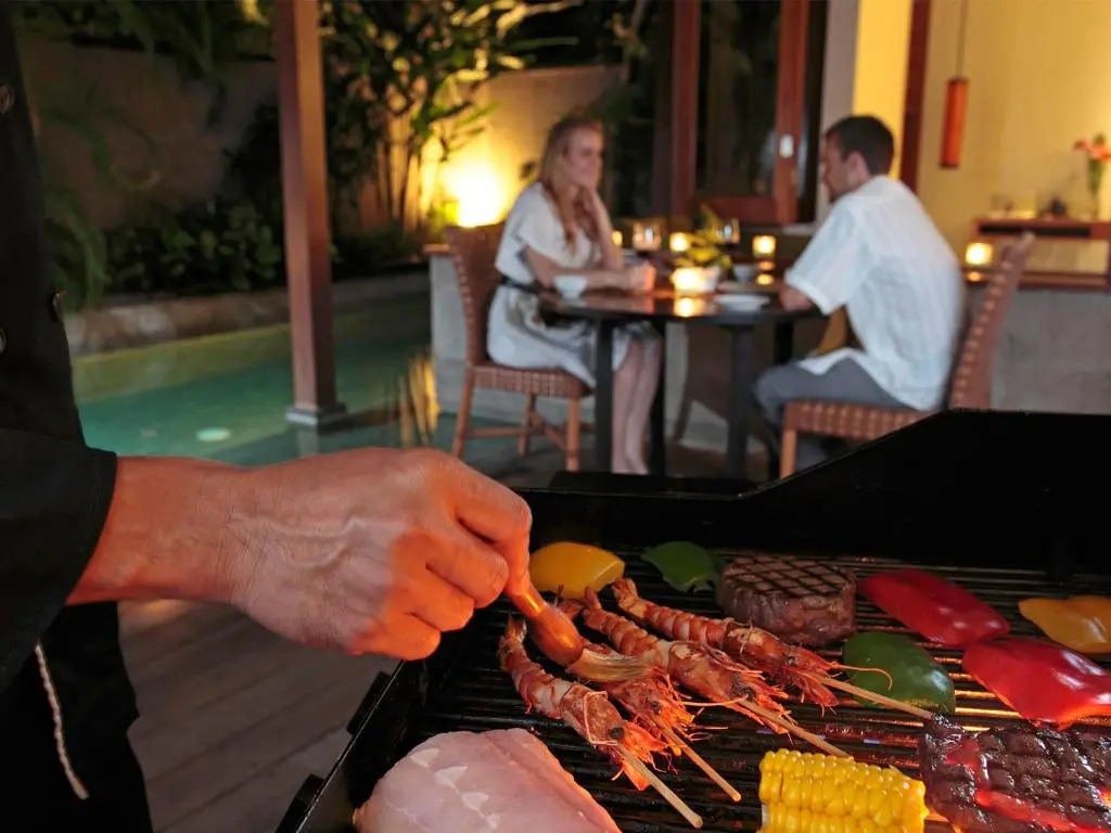 Рестораны специализируются на балийской и южноазиатской кухнях. Здесь можно не только вкусно перекусить, но и записаться на курсы кулинарного мастерства.