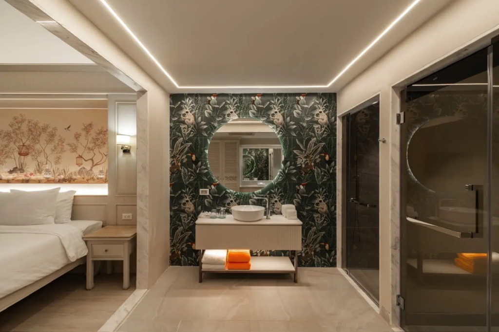 В номере естьт душ, телевизор, мини-бар, халат и тапочки. Оснащение зависит от выбранной категории номера.