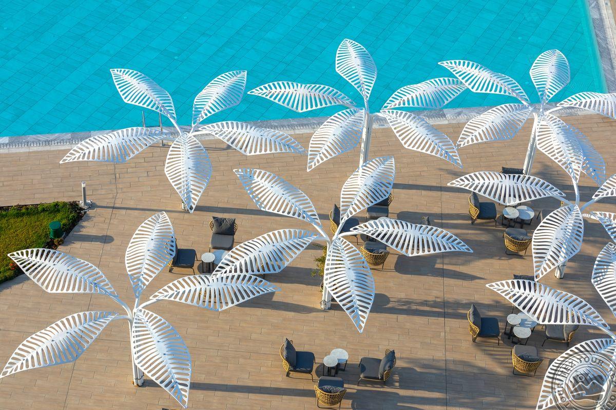 Территория:> рестораны: 3 бары: 2 крытые бассейны: 1 (с подогревом в зимнее время) бассейны: 1 (открытый) у бассейна полотенца: бесплатно у бассейна зонтики, шезлонги: бесплатно Wi-Fi бесплатно парковка есть