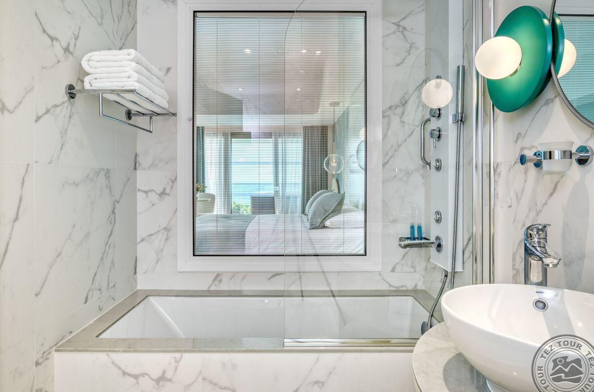 Junior Suite Sea View with Private Jacuzzi (33 м2, макс. 3 чел., однокомнатный номер, балкон с джакузи, вид на море).