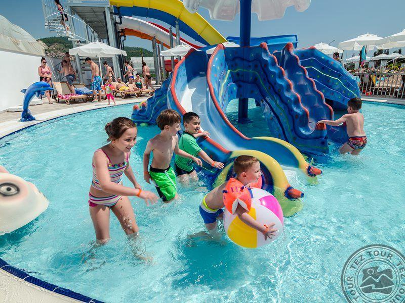 Детям:> детский клуб (4–12 лет) детский бассейн: есть водные горки: 1