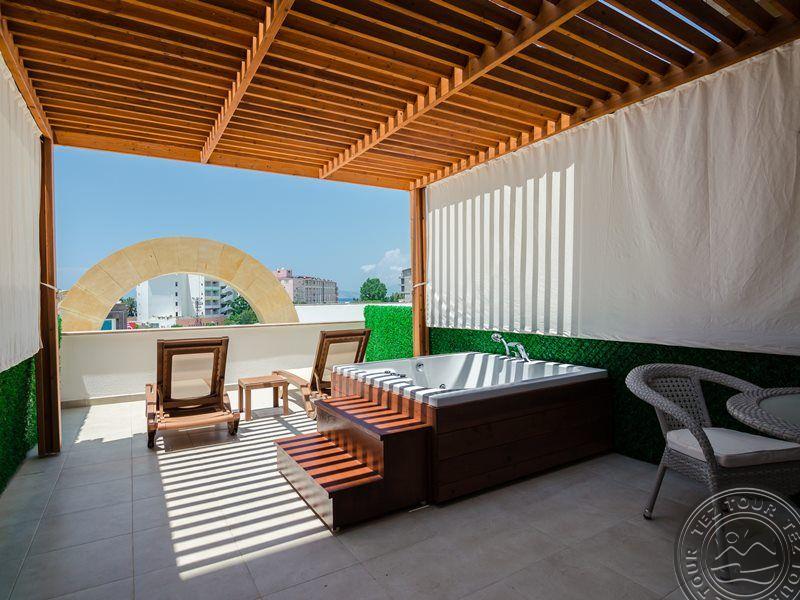 15 однокомнатных Deluxe room (джакузи на террасе, макс. 3 чел., 28 м2).