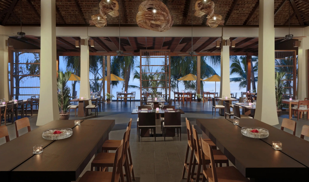 Когда вы проголодаетесь, курорт приглашает вас посетить ресторан на пляже. Для тех, кто предпочитает уединиться, отель предоставляет обслуживание номеров (по расписанию). Курорт располагает бассейном, где можно не только освежиться, но и насладиться любимыми напитками из бара, расположенного прямо у кромки воды. Ежедневно за дополнительную плату предлагается завтрак. Тип завтрака — шведский стол.