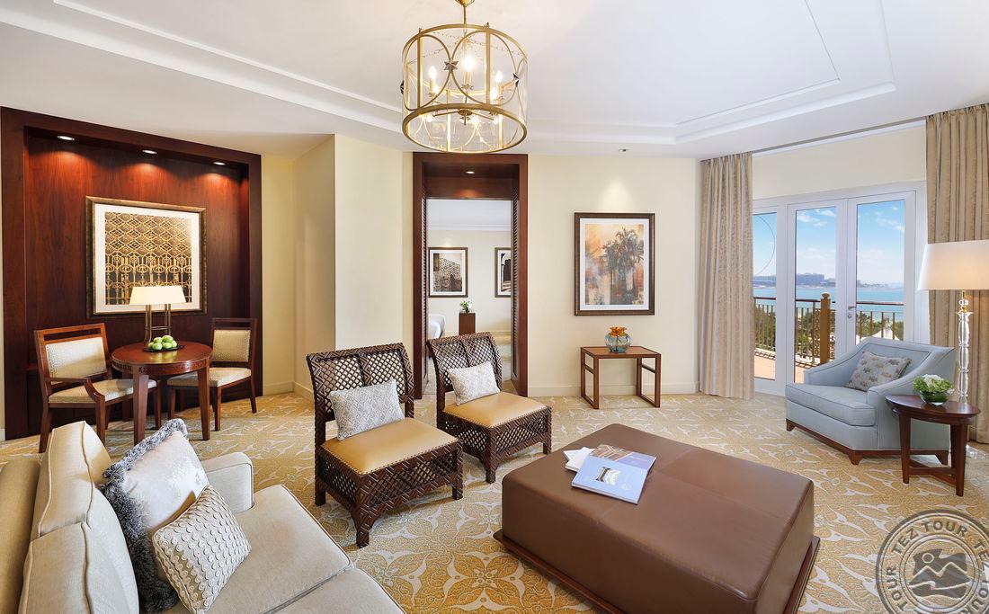 One Bedroom Suite (нижний, 2-6 этажи, с видом на территорию отеля, гостиная и спальня с дверью, двуспальная кровать, макс. 3 или 2+2 чел., 108 м2, привилегии);