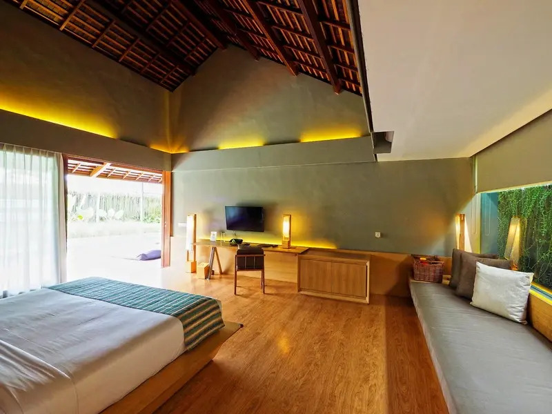 Описание номеров The Santai Umalas 5*:Чтобы вы могли отдохнуть после долгого дня, в номере есть DVD-плеер, душ, телевизор, мини-бар, халат и тапочки. Перечисленные услуги есть не во всех номерах.