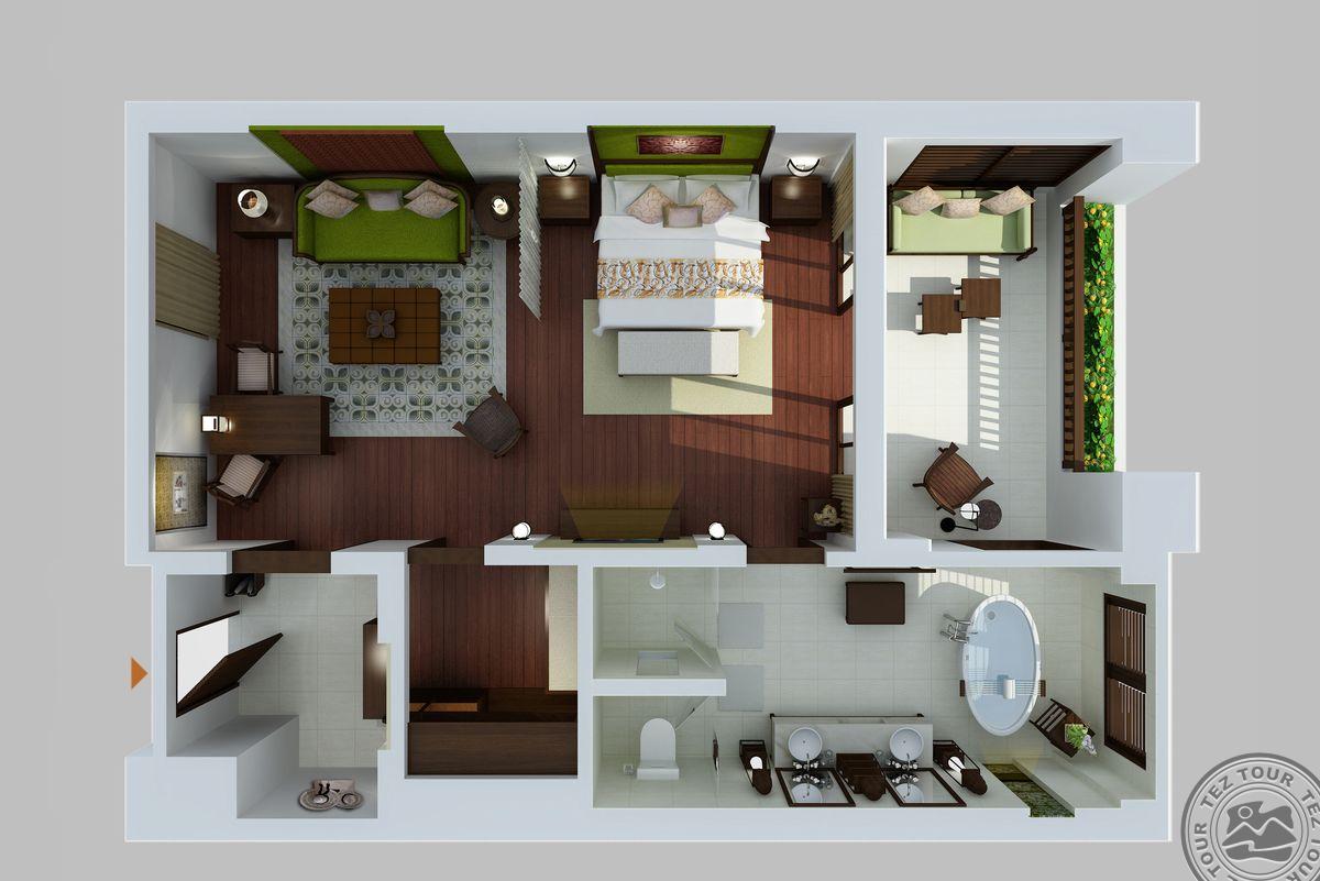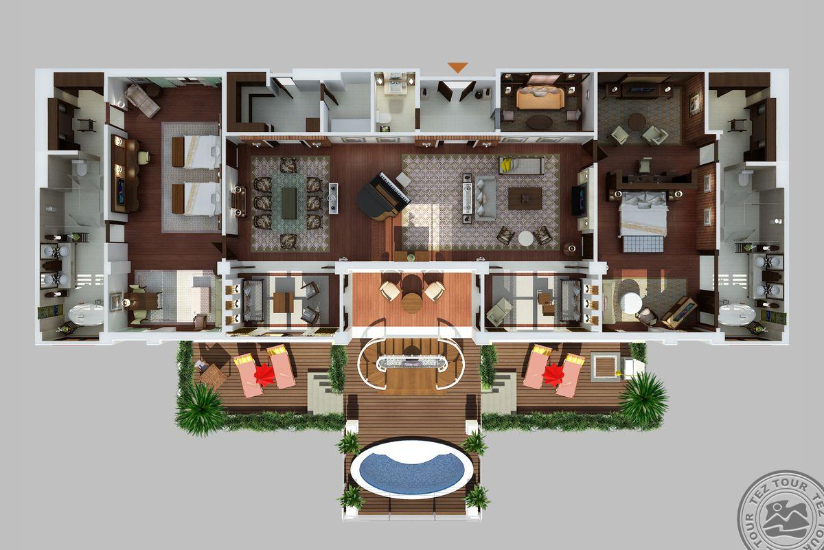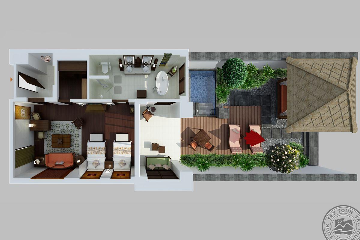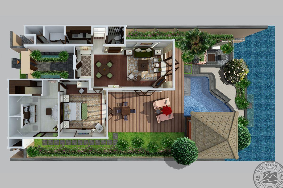 14 Pool Villa Suite (на первом этаже, вид на бассейн, спальня с зоной гостиной, двуспальная или 2 односпальные кровати, сад и частный джакузи-бассейн 10 м2, терраса, макс. 2+2 или 3 чел., 189 м2);