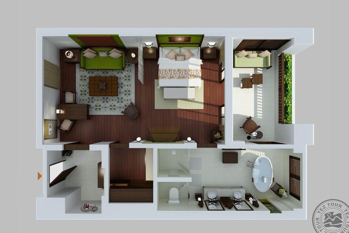 61 St. Regis Suite (вид на сад, спальня и гостиная разделены визуально, двуспальная или 2 односпальные кровати, макс. 2+2 или 3 чел., 92 м2);