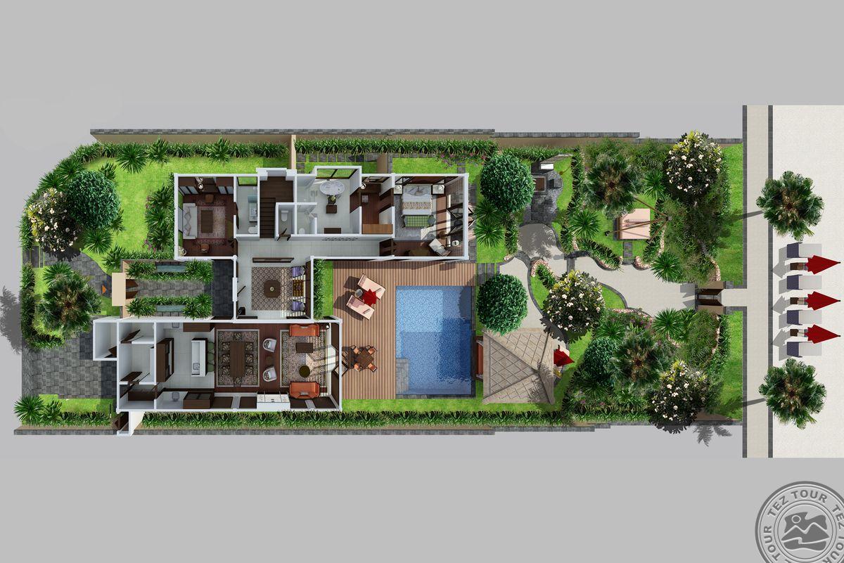 9 Gardenia Villa (вид на сад, гостиная и спальня, двуспальная кровать, гардеробная, комната дворецкого, сад с беседкой, частный бассейн, душ на открытом воздухе, макс. 2+2 или 3 чел., общая площадь 411 м2);
