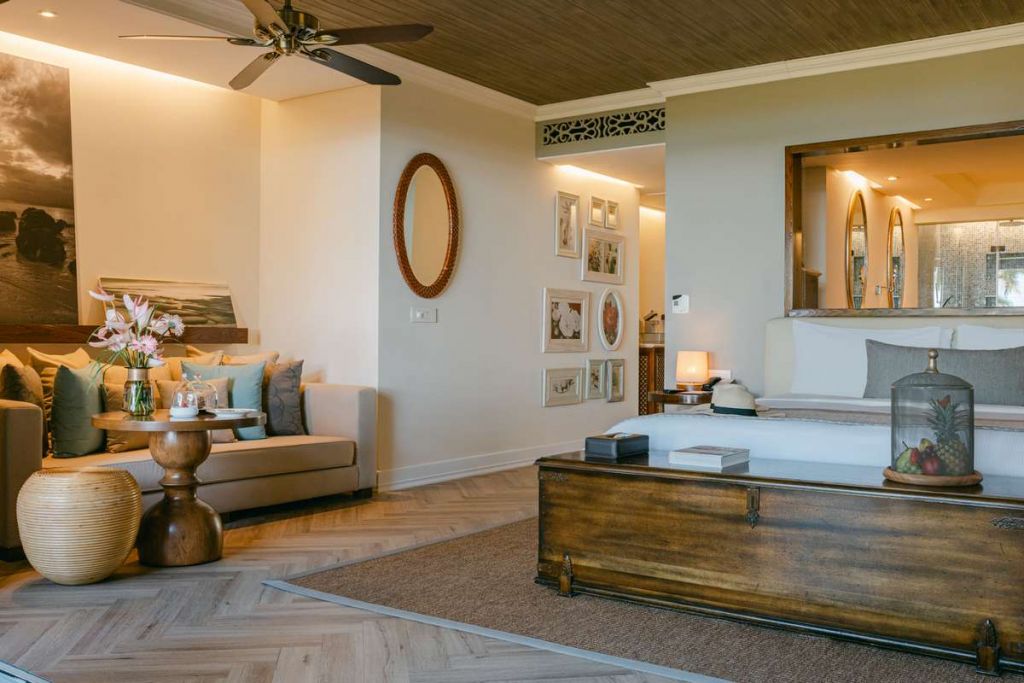 - (12)Heritage Balcony Junior Suite (ex.Beachfront Balcony Junior Suite) (Площадь 75 кв.м.) Номера расположены на втором этаже в блоках по 4 номера в каждом в непосредственной близости от пляжа и океана. К услугам гостей спальня с зоной отдыха (кровать king), ванная комната, балкон.