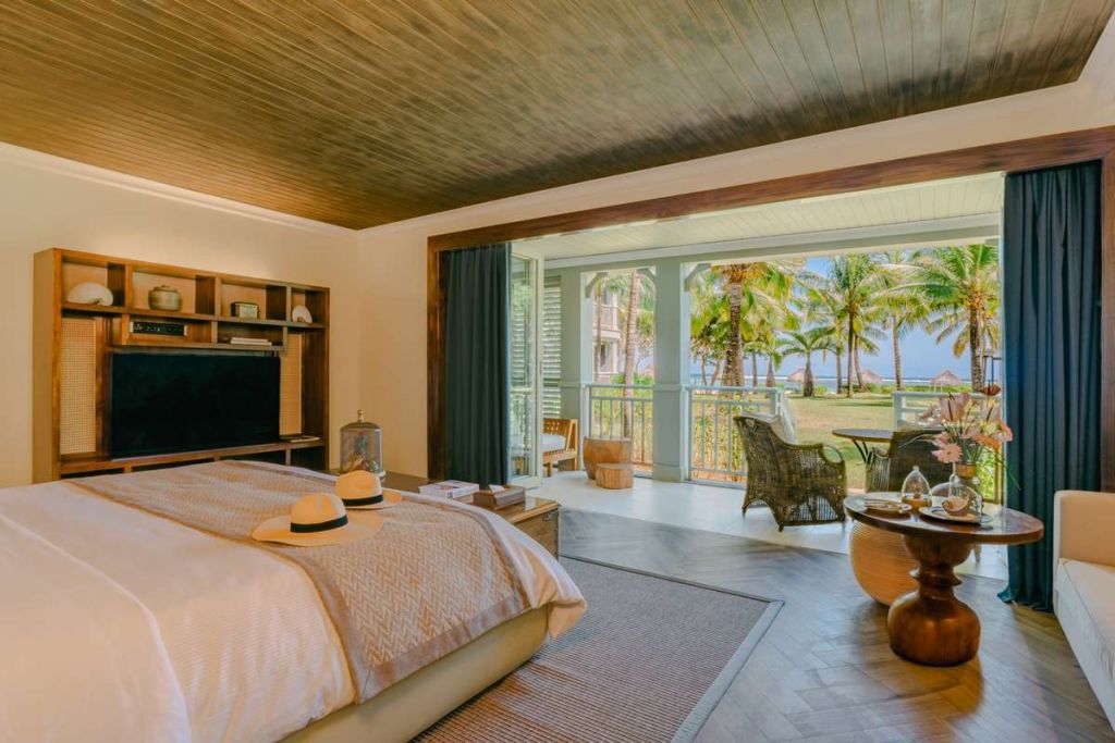 - (05) Le Morne Beach Access Suite (ex.Beachfront Access Grand Suite) (Площадь 150 кв.м.) Более просторные номера расположены на первом этаже в блоках по 2 номера в каждом, в непосредственной близости от пляжа и океана. К услугам гостей спальня (кровать king), гостиная, ванная комната, терраса.