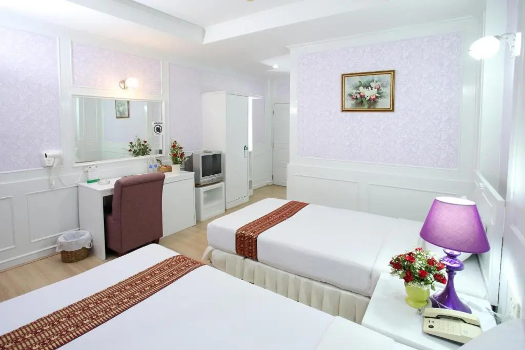 Описание номеров The Sukosol 5*:Номерной фонд отеля представлен 71 уютным номером, оформленным в светлых пастельных тонах. К услугам гостей предлагается кабельное телевидение, телефон и мини-бар. В качестве бонуса от отеля в номер регулярно приносят бесплатную бутилированную воду.