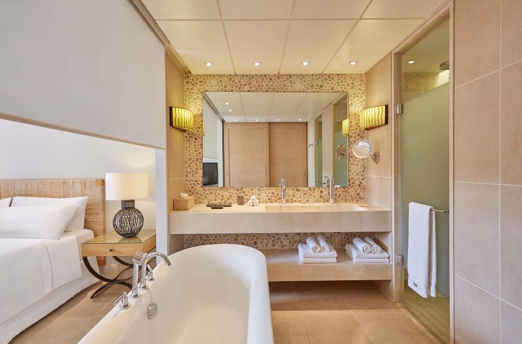 - Suite Infinity Resort View/Private Pool (~70-80 кв.м) Индивидуальный переливной бассейн (~23 -35 кв.м), комфортная гостиная с зоной для отдыха и диван-кроватью, обеденной зоной и ванной комнатой, кофе-машина Nespresso, спальня с двуспальной кроватью с открытой ванной комнатой, отдельно стоящая ванна, терраса с видом на сады и бассейны курорта.