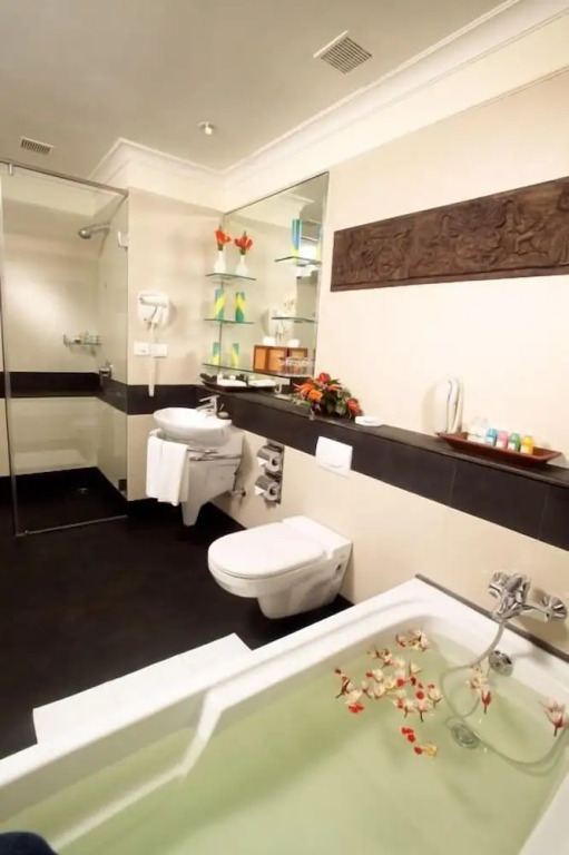 В отеле:В ресторане Lime Tree подают завтрак "шведский стол" и ужин по меню из блюд индийской и международной кухни, а в ресторане Lacuna Bass можно попробовать аутентичные индийские кушанья и морепродукты на гриле. К услугам гостей элегантный Trunk Call Bar, а также сигарный лаунж-бар.; В отеле есть открытый бассейн с пресной водой. В роскошном спа-центре Maya вам предложат широкий выбор косметических и оздоровительных процедур Аюверда по уходу за лицом и телом, включая различные виды аювердического массажа и гидротерапии. Вы можете посетить фитнес-центр, заняться йогой и медитацией, а также посетить сауну и турецкую баню.; За дополнительную плату предоставляется беспроводной доступ в Интернет.Также для гостей отеля работает бесплатная парковка.