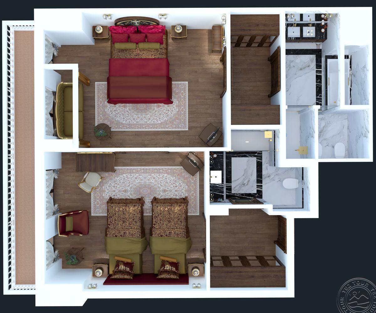 Premium family room (2 спальни с дверью, 2 ванные комнаты, гостиный уголок, макс. 4+инф., 70 м2);