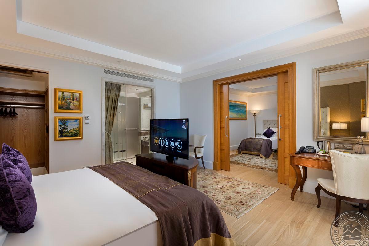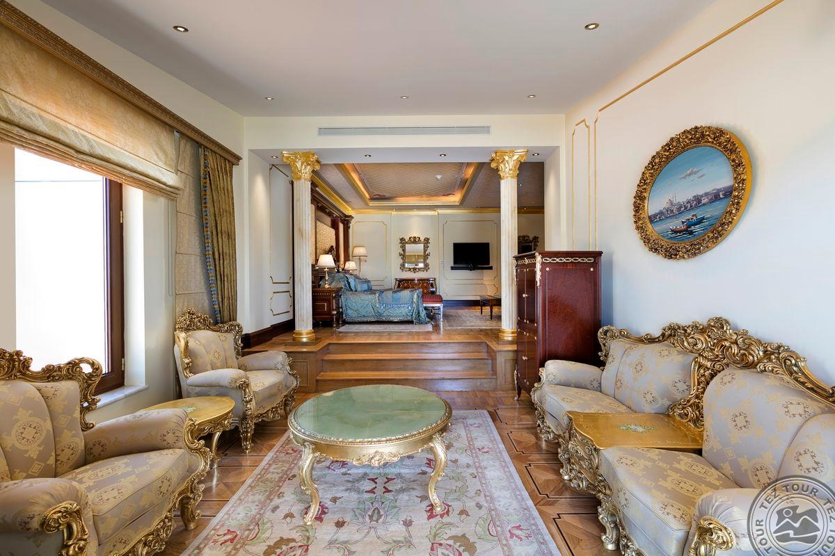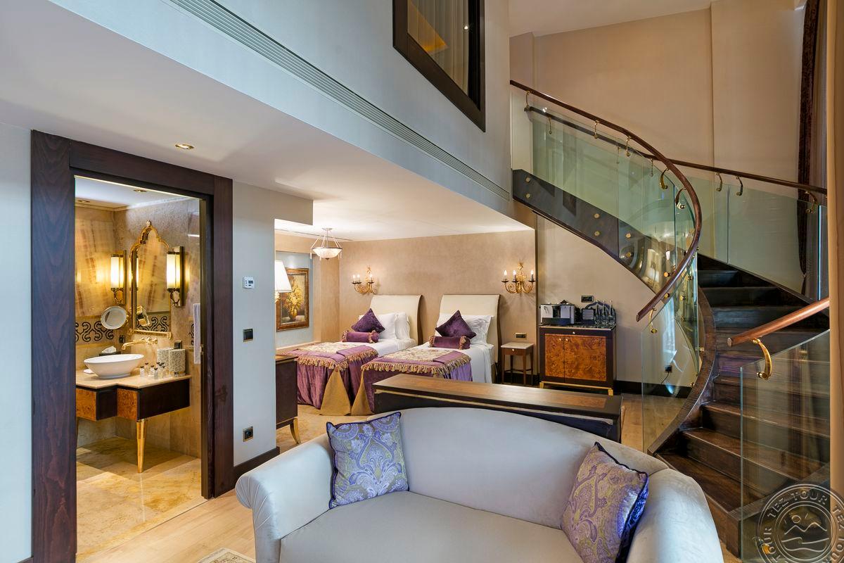 Grand duplex suite (расположен на 5 этаже, на верхнем этаже – спальня, джакузи, гостиный уголок; на нижнем этаже – 2 раздельные кровати, гостиная; макс. 5+инф, 145 м2);