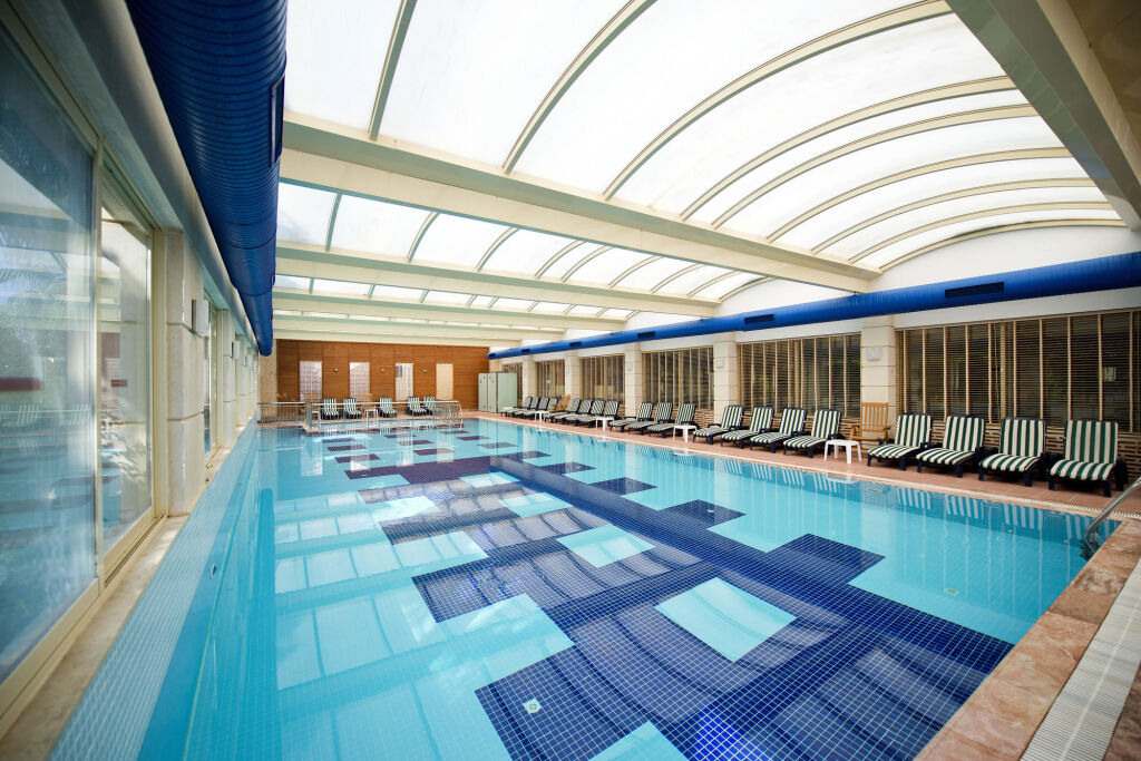 На курорте:Скоротать вечер или приятно провести время перед сном в уютной атмосфере можно в баре. Попробовать новые блюда и отдохнуть можно в ресторане. На территории работает бесплатный Wi-Fi. Уточняйте информацию сразу при заезде. Для путешественников на машине организована бесплатная парковка.; Также для гостей на курорте: массажный кабинет, сауна, паровая баня и спа-центр. Специально к услугам гостей, не упускающих возможность заняться спортом, фитнес-центр и настольный теннис. Скучно не будет, ведь на курорте к услугам отдыхающих библиотека и пинг-понг. Для тех, кто не представляет отдых без водных удовольствий, есть бассейн, аквапарк, крытый бассейн и открытый бассейн.; Можно организовать деловую встречу, переговоры и даже собеседование. Для этого предусмотрены конференц-зал и оборудование для встреч и презентаций. На курорте есть игровые детские комнаты. Будьте готовы к тому, что детям будет весело, а вам придется коротать вечер со взрослыми. Чтобы путешествие было не только приятным, но и удобным, гости могут заказать трансфер. Дополнительно: прачечная, химчистка, гладильные услуги, пресса, прокат автомобилей, сейф и консьерж.; Персонал курорта говорит на английском и немецком.