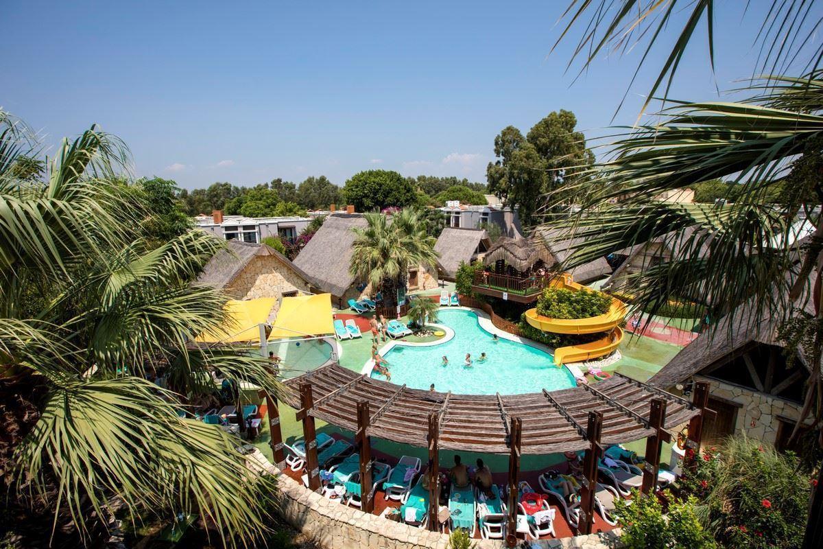 - 4 открытых бассейна: большой бассейн (1227 кв.м), бассейн с джакузи (25 кв.м), релакс-бассейн (364 кв.м; для взрослых), пляжный бассейн (402 кв.м)