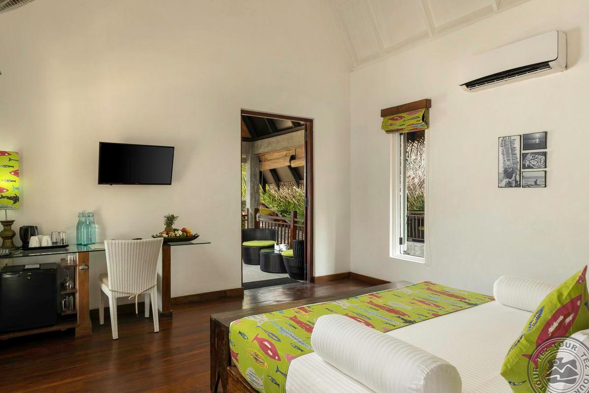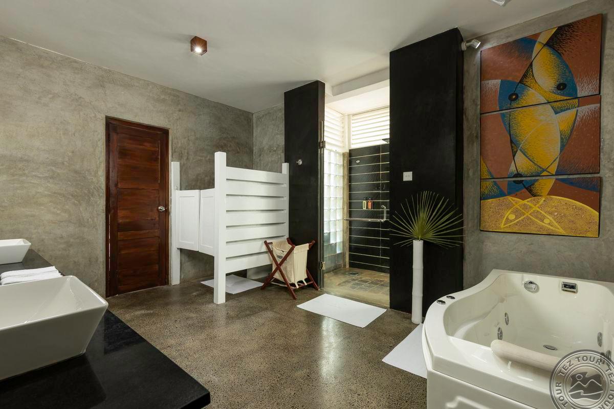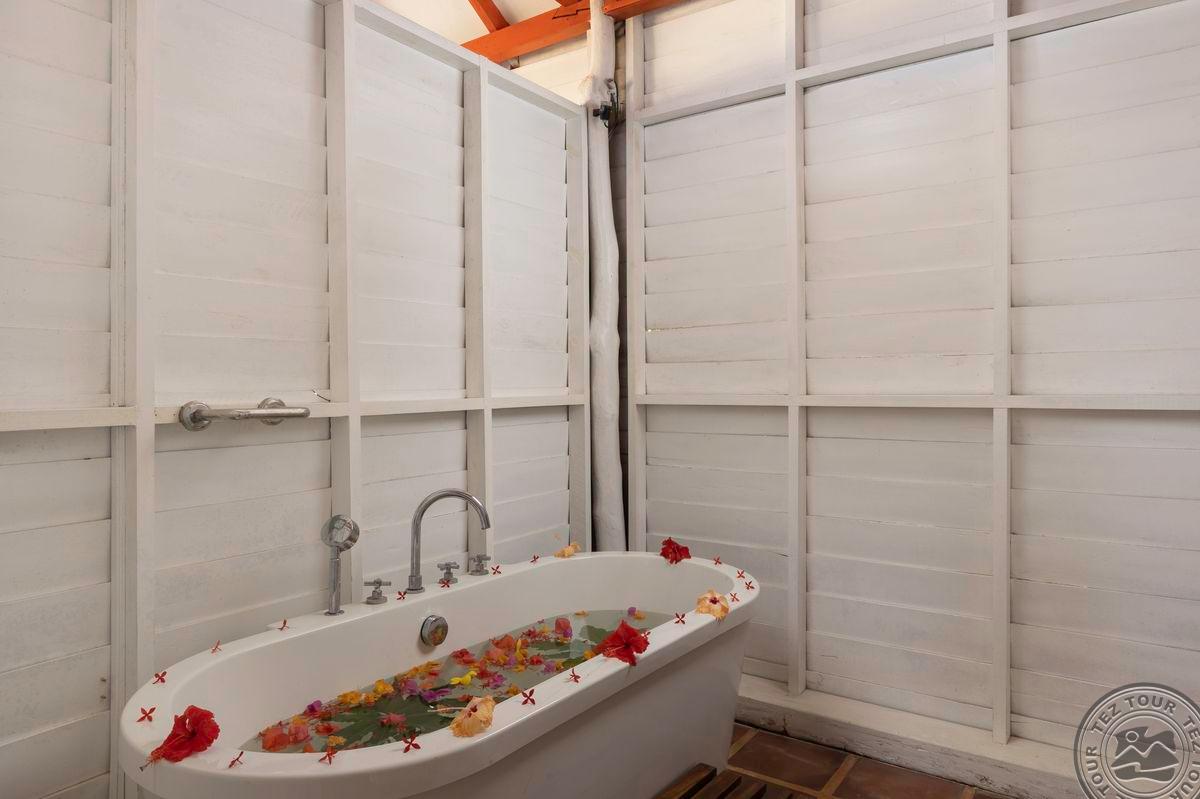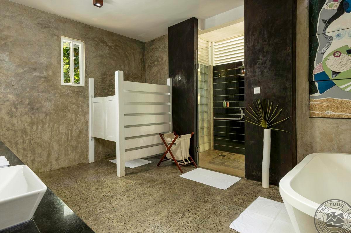 4 Ocean Suite (вид на море, двуспальная кровать queen size, ванная комната с джакузи и тропическим душем, большая терраса с приватным бассейном и парной на два номера, макс. 3 чел., 40 м2 (в т.ч. снаружи 9,22 м2)).