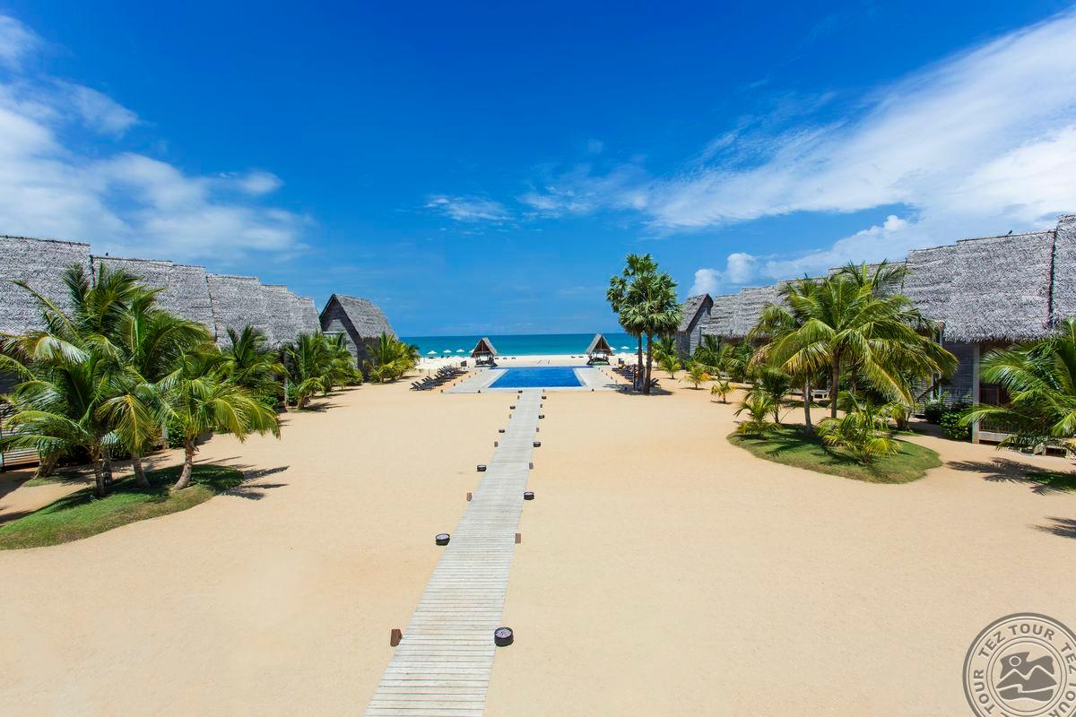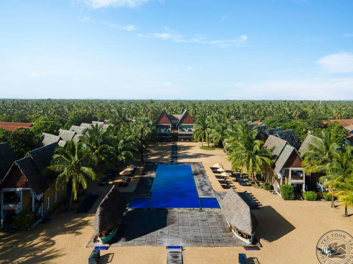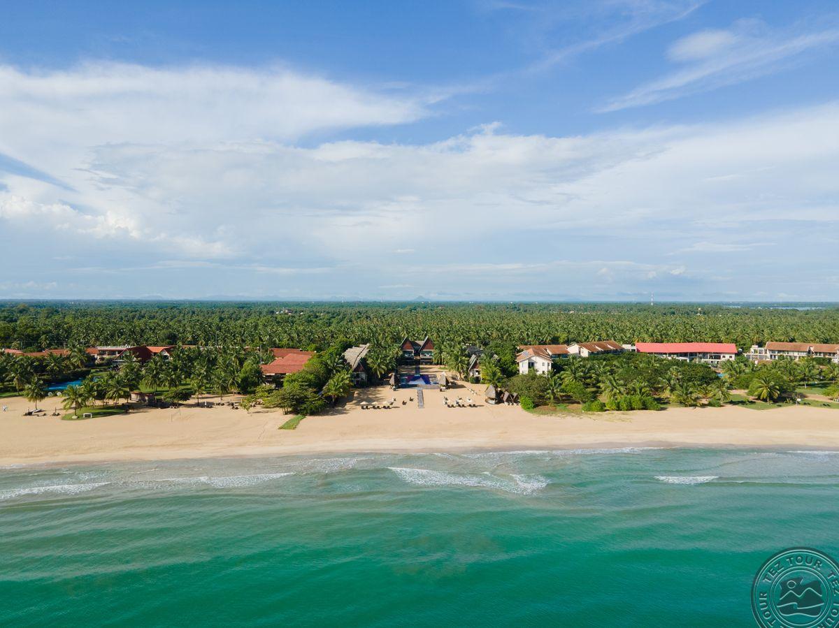 на восточном побережье Шри-Ланки, на пляже Пассикуда, в 300 км от международного аэропорта Коломбо, на берегу моря.
