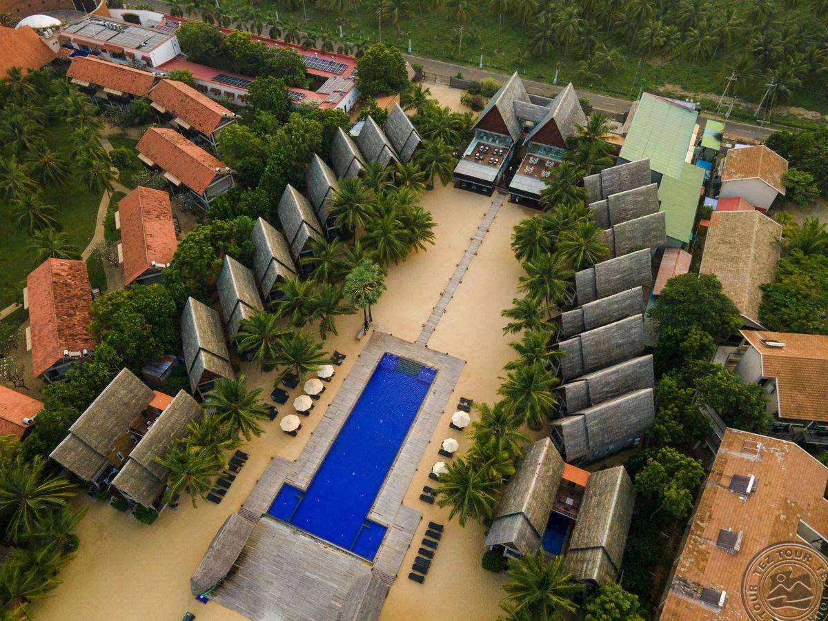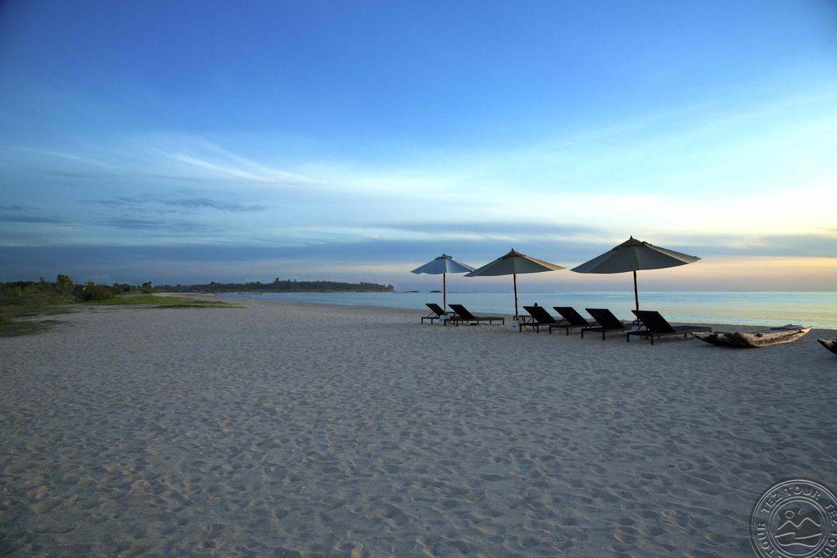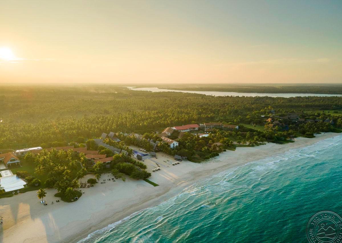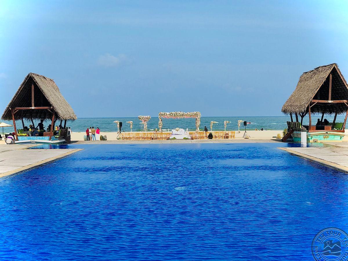 на восточном побережье Шри-Ланки, на пляже Пассикуда, в 300 км от международного аэропорта Коломбо, на берегу моря.