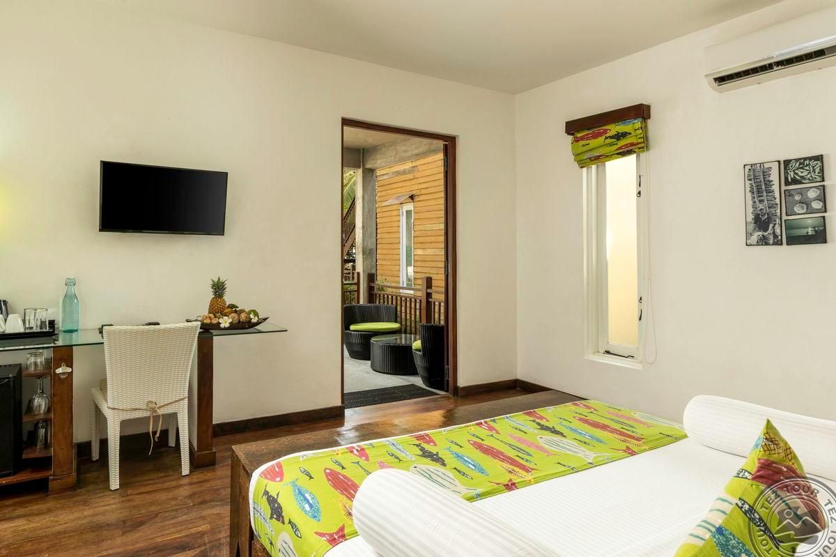 8 Deluxe with Attic (частичный вид на море, двухуровневый номер, на первом этаже – двуспальная кровать queen size, на втором – две односпальные кровати, ванная комната с ванной и тропическим душем, макс. 4 чел., 52 м2 (в т.ч. снаружи 6 м2)).