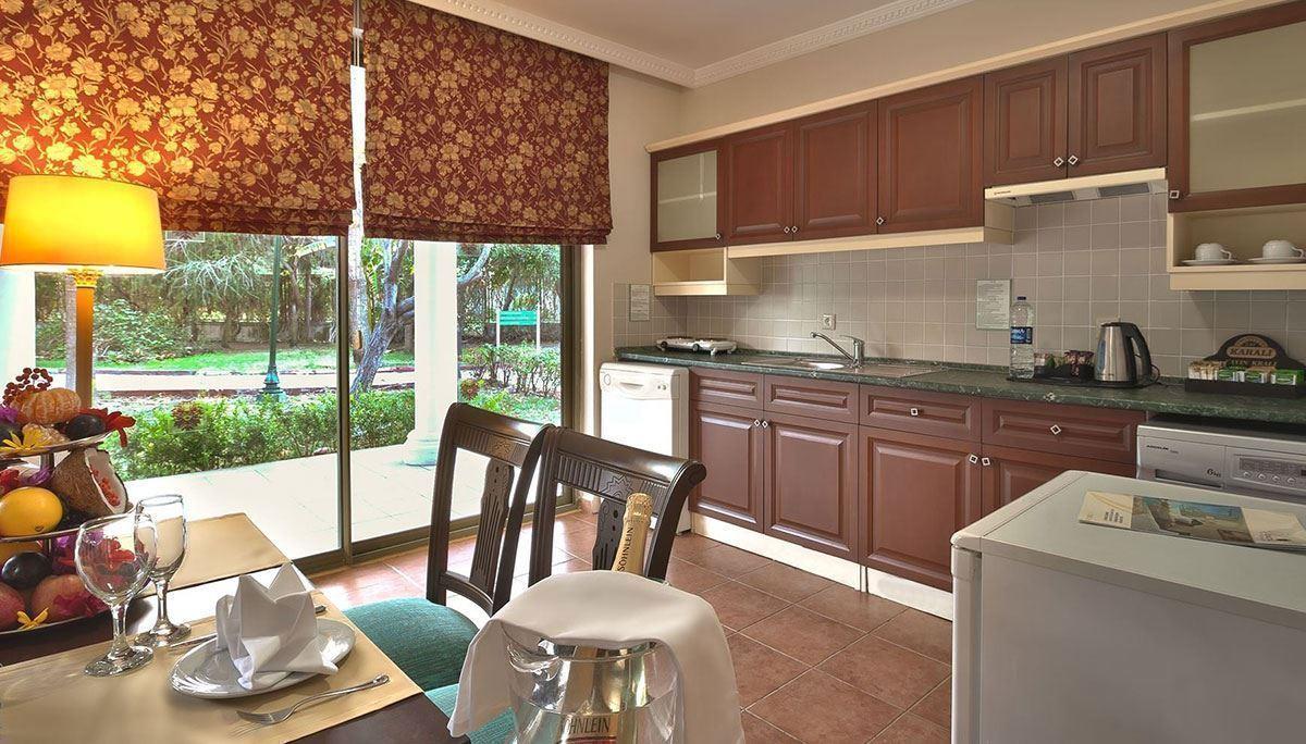 В концепцию входит: завтрак, поздний завтрак, обед и ужин – шведский стол, закуски, выпечка, пирожные, гезлеме и мороженое - в определенные часы, ночной суп, диетическое и вегетарианское меню, безлактозное и безглютеновое меню по запросу, местные и некоторые импортные (только в одном из баров отеля) алкогольные и безалкогольные напитки.