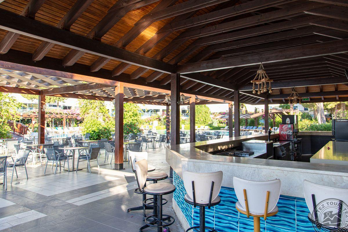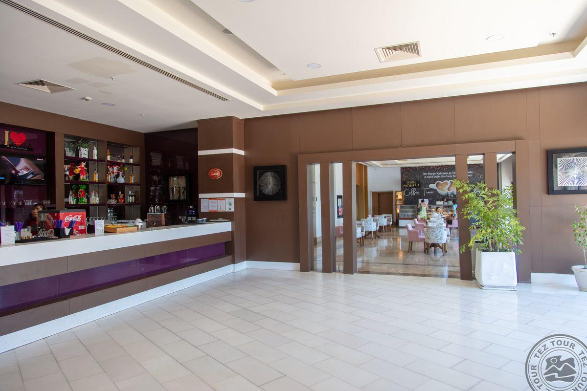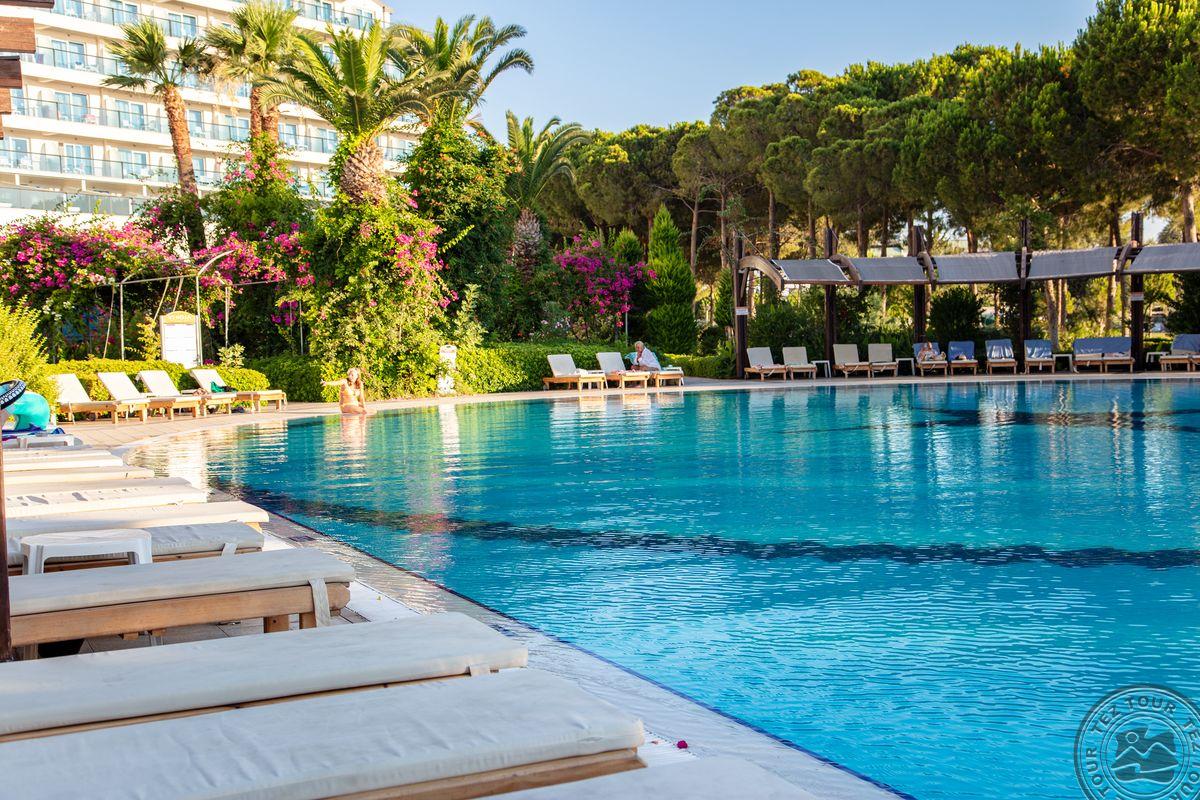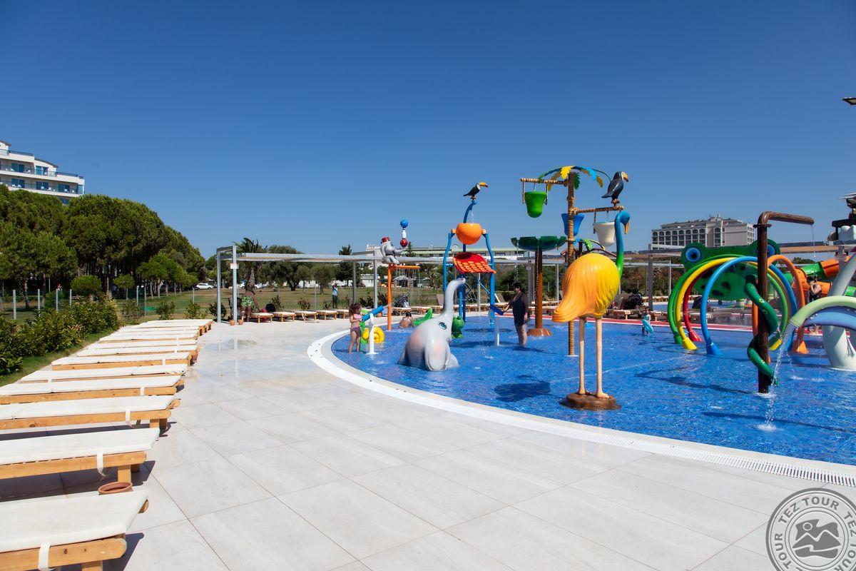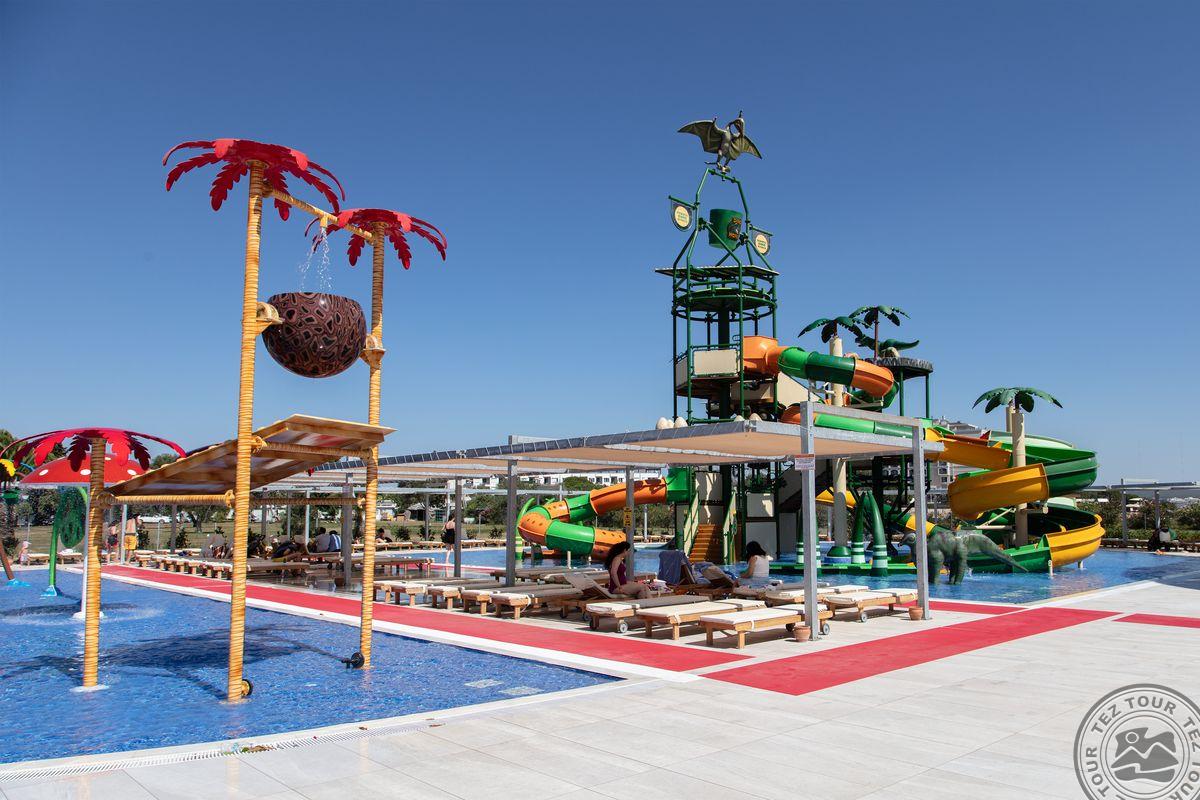 Территория:> рестораны: 1 (основной) бары: 4 крытые бассейны: 1 бассейны: 2 (открытые) спа-центр конференц-залы: 2 (макс. 800 чел.) диетическое меню химчистка рестораны a la carte: 5 (турецкий, рыбный, итальянский, мексиканский, индиский по предварительной записи, за неделю проживания посещение 1 раз бесплатно, напитки платно) кабинет врача водные горки: 3 прачечная Wi-Fi бесплатно (на всей территории отеля) у бассейна зонтики, шезлонги, матрасы: бесплатно парикмахерская магазины