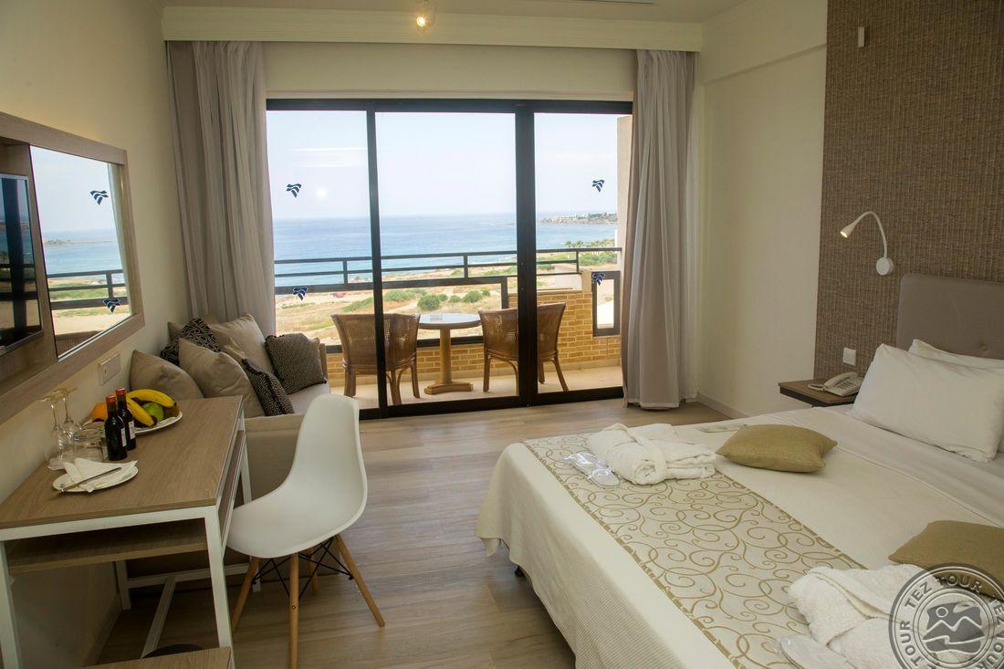 в 145 км от аэропорта г. Ларнака, в 13 км от аэропорта г. Пафос, в 2,5 км от центра города Пафос, на берегу моря. Большая часть номеров с видом на море.