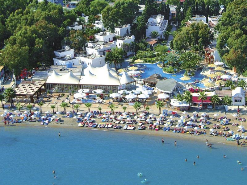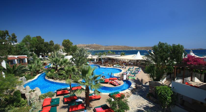 Особенности отеля.:Отель в городе Бодрум с частным пляжем. В ресторане отеля предлагается завтрак, второй завтрак и обед. Также отель предоставляет к вашим услугам следующие места питания: кафетерий кафе и бакалея магазин товаров первой необходимости. На территории отеля работают бар у бассейна и бар в лобби отеля. Обслуживание номеров выполняется по расписанию. В отеле имеются места отдыха и развлечений: открытый бассейн, детский бассейн, сауна и фитнес-центр. В этом 3-звездном отеле имеется бизнес-центр и предлагается следующее: конференц-зал и бизнес-услуги. Беспроводной доступ в Интернет в зонах общественного пользования. В этом отеле в городе Бодрум имеется 40 кв. фут. площади для проведения встреч и конференций; предлагается следующее: помощь в организации банкетов. В отеле предлагаются следующие услуги: услуги консьержа и помощь туристам услуги по бронированию билетов. Предусмотрена бесплатная парковка для гостей. Дополнительные услуги отеля включают следующее: услуги прачечной.; **Номера. **; В 176 кондиционируемых номерах отеля предоставляются следующие удобства: мини-бар и сейфы. Имеются балконы, откуда открывается вид на сад. В номерах предоставляются стол и телефон с прямым набором номера. Имеется возможность просмотра спутниковых телеканалов. По запросу предоставляется: услуга пробуждения по телефону; обслуживание номеров выполняется ежедневно. Все номера отеля – это номера для некурящих.