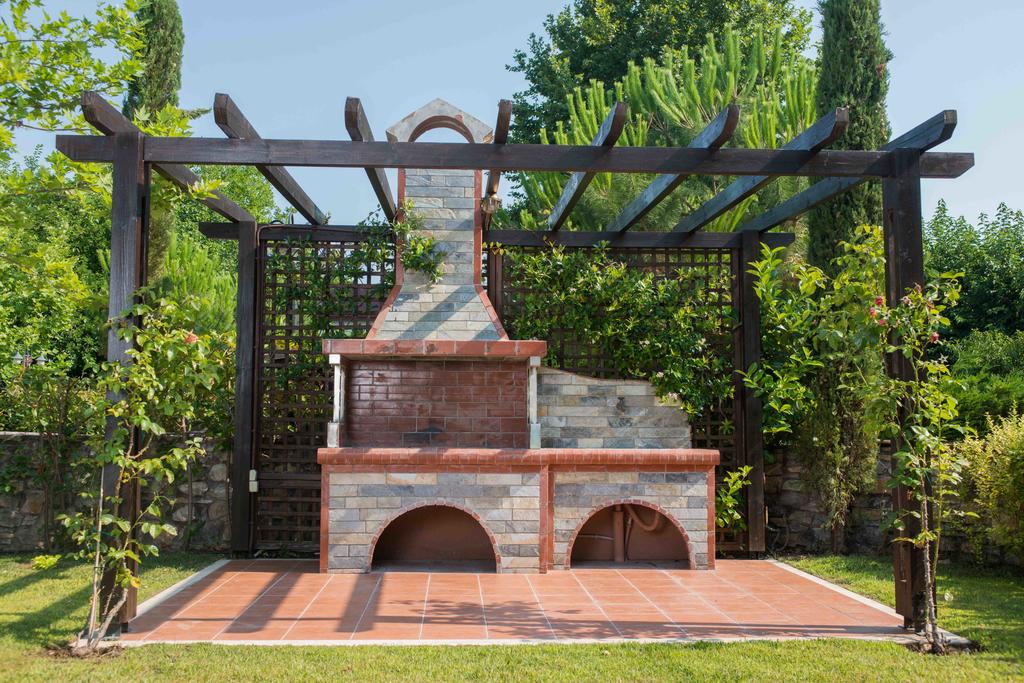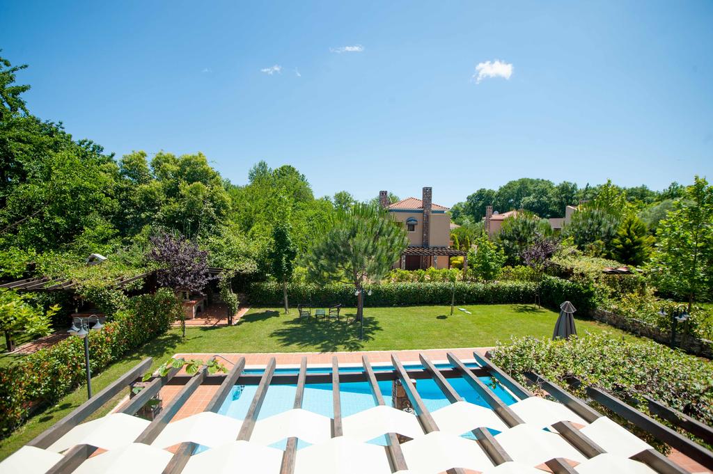 Частный бассейн, лежаки и зонты, беседка с обеденным столом, сад с газоном, барбекю, частная автостоянка на 2 автомобиля. Частная спортивная площадка для игры в баскетбол, теннис и футбол).