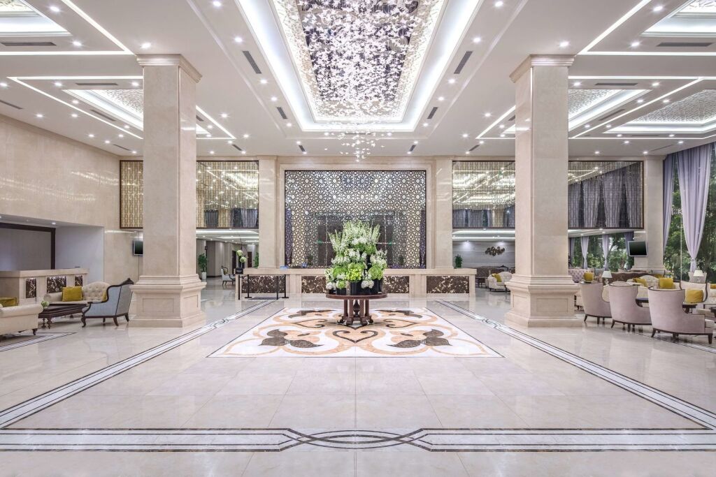 В отеле:Для гостей работает бар. Попробовать новые блюда и отдохнуть можно в ресторане. Бесплатный Wi-Fi на территории поможет всегда оставаться на связи. Если вы путешествуете на машине, припарковаться можно будет на бесплатной парковке.; Если вы путешествуете на машине, припарковаться можно будет на парковке рядом. Гостям также доступны следующие услуги: массажный кабинет, сауна и спа-центр. Специально к услугам гостей, не упускающих возможность заняться спортом, фитнес-центр и тренажёрный зал. Любители водных процедур оценят открытый бассейн.; Можно организовать деловую встречу, переговоры и даже собеседование. Для этого предусмотрен конференц-зал. Дети будут рады! Работает детская игровая комната. Чтобы забронировать экскурсию, обратитесь в экскурсионное бюро отеля. Чтобы путешествие было не только приятным, но и удобным, гости могут заказать трансфер.; Удобно для гостей с ограниченными возможностями: на верхние этажи гостей поднимает лифт. Гостям доступны и другие услуги. Например, прачечная, химчистка, пресса, сейф и консьерж. Сотрудники отеля поддержат беседу на английском.