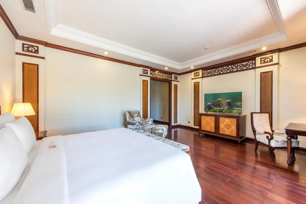 Описание номеров Vinpearl Luxury Nha Trang 5*:Отель Vinpearl Luxury Nha Trang предлагает своим гостям 84 номера различных категорий с видом на пляж или горы. В каждом номере есть кондиционер, индивидуальный сейф, HD-телевизор с возможностью просмотра спутниковых каналов, док-станция для iPod, кофеварка и мини-бар. Предоставляется бесплатный высокоскоростной беспроводной доступ в Интернет. В ванных комнатах имеются дизайнерские туалетные принадлежности.; В отдельных номерах есть личные бассейны, также всех гостей ждут приветственные подарки. По запросу предоставляются утюг, гладильная доска и раскладная кровать. Обслуживание номеров осуществляется ежедневно.