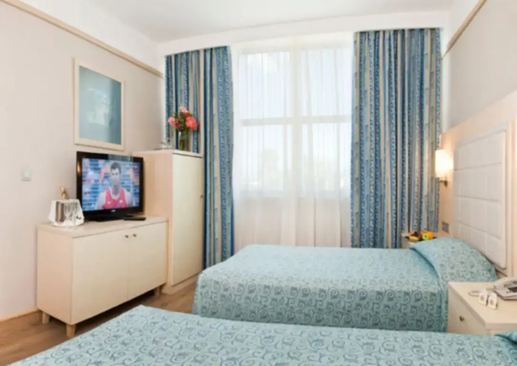 На курорте:Скоротать вечер или приятно провести время перед сном в уютной атмосфере можно в баре. Для гостей работает ресторан. Для любителей кофе и перекусов открыто кафе. Бесплатный Wi-Fi на территории поможет всегда оставаться на связи.; Специально для автопутешественников организована бесплатная парковка. Специально для автопутешественников организована парковка. Гостям также доступны следующие услуги: массажный кабинет, сауна, паровая баня, спа-центр и врач. Любителям спорта подготовили фитнес-центр, настольный теннис и дайвинг.; Скучно не будет, ведь на курорте к услугам отдыхающих караоке, библиотека, боулинг и пинг-понг. Для тех, кто не представляет отдых без водных удовольствий, есть бассейн, аквапарк и открытый бассейн. Для участников деловых встреч предусмотрен бизнес-центр. На курорте есть игровые детские комнаты. Будьте готовы к тому, что детям будет весело, а вам придется коротать вечер со взрослыми.; Если планируете экскурсии, обратите внимание на экскурсионное бюро курорта. Доступная среда: работает лифт. А ещё в распоряжении гостей прачечная, химчистка, индивидуальная регистрация заезда и отъезда, гладильные услуги, прокат автомобилей, сейф и консьерж. Сотрудники курорта поддержат беседу на английском, немецком, русском и французском.