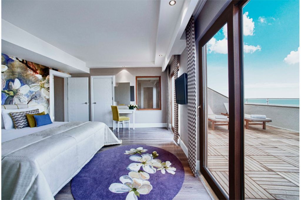 • Deluxe Room: 30 кв.м, основное здание, боковой вид на море, 1 спальная комната 30 кв.м, 1 двуспальная кровать, терраса 30 кв.м с деревянным полом (1 джакузи, 2 шезлонга, 1 пляжный зонт, стол и 2 стула на террасе), джакузи на террасе Размещение: 2 взрослых + 1 инфант. 1 спальная комната 30 кв.м, стул, 1 кресло, телевизор (диагональ 105 см), музыкальный канал, DVD и CD плееры, домашний кинотеатр, сплит кондиционер, ламинированный пол, мини бар, сейф, набор: чай, кофе и электрический чайник, телефон, ванная, туалет, халат, тапочки, фен, зеркало, 1 гидромассажная ванная и душ, 1 туалет, терраса 30 кв.м2 с деревянными полам (2 шезлонга, 1 пляжный зонт, стол и 2 стула на террасе).