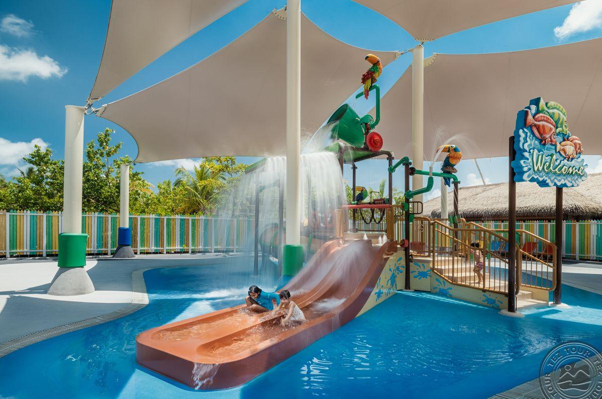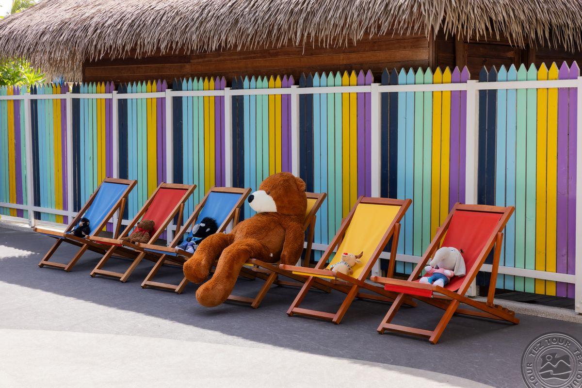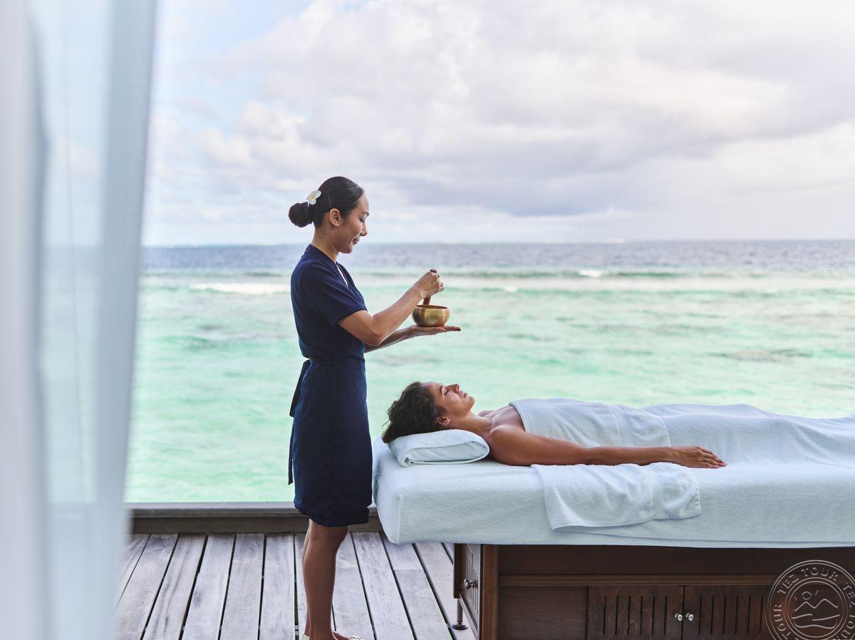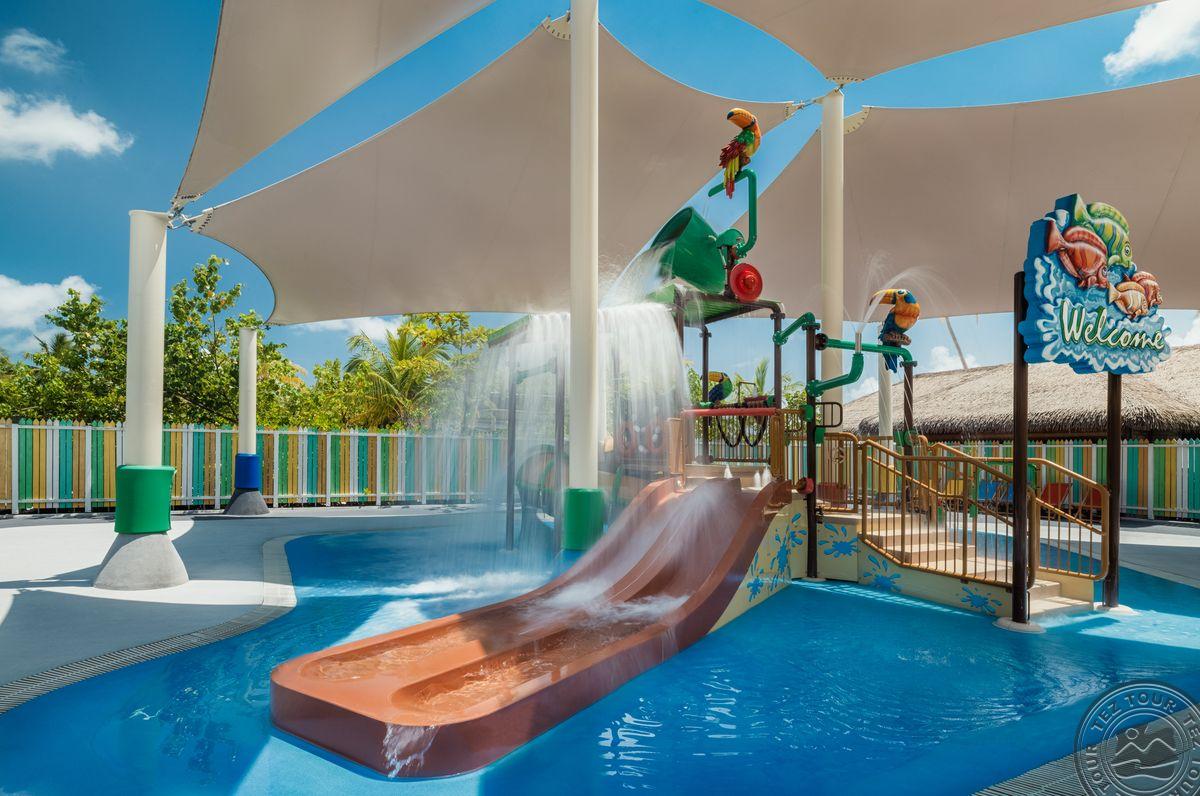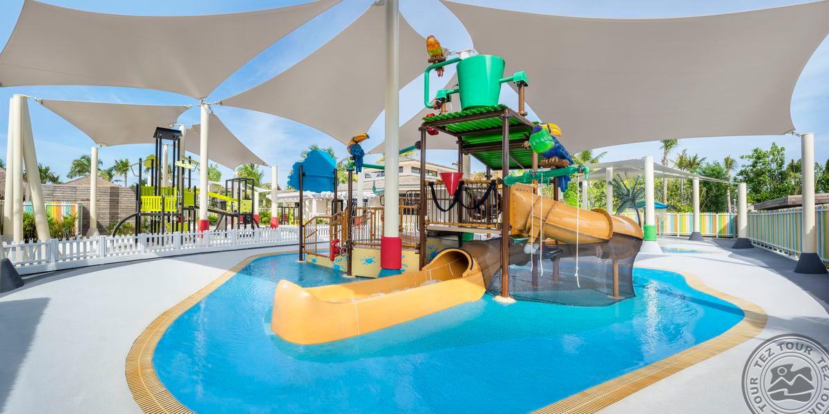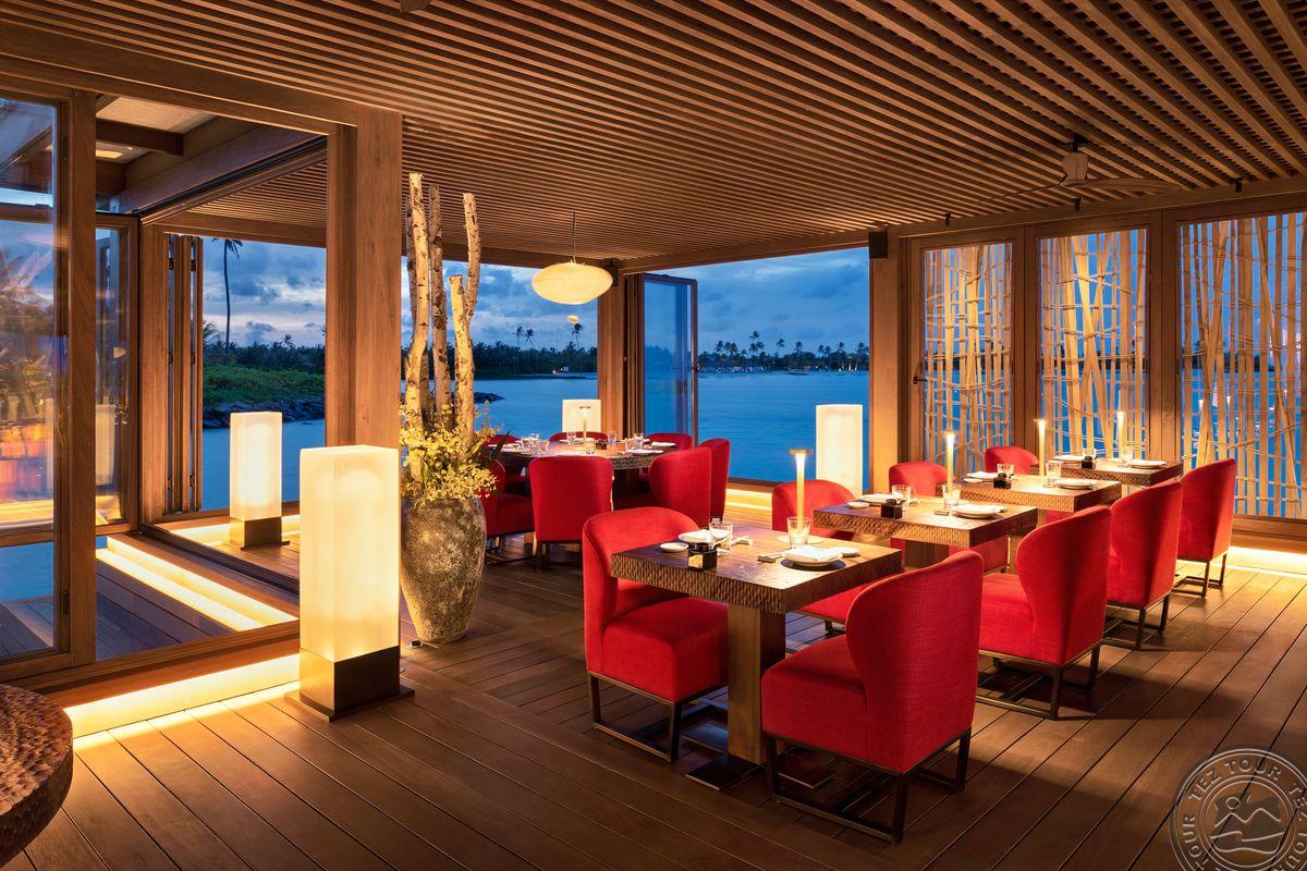 1 вилла 3 Bedroom Overwater Villa with Pool (1113 м2; макс. 7 или 6+2 чел.). Водная вилла с тремя спальнями (две с кроватями king-size; одна – с раздельными twin/ третья спальня расположена отдельно от всего комплекса), гостиной, обеденной зоной, комнатой для няни. Терраса с обеденной зоной и зоной для отдыха, два частных бассейна (10x4 и 15x4), джакузи, надводный гамак, прямой спуск к рифу.