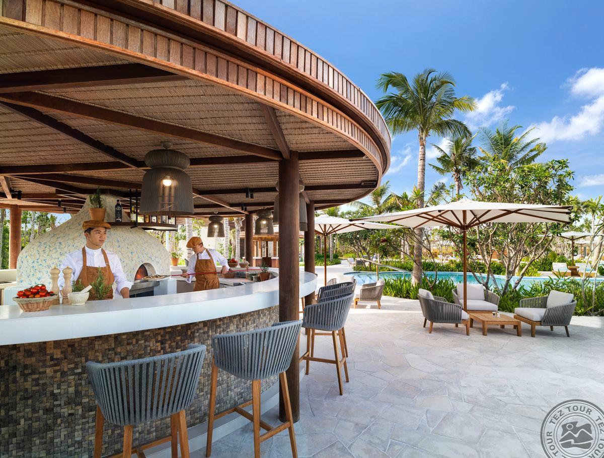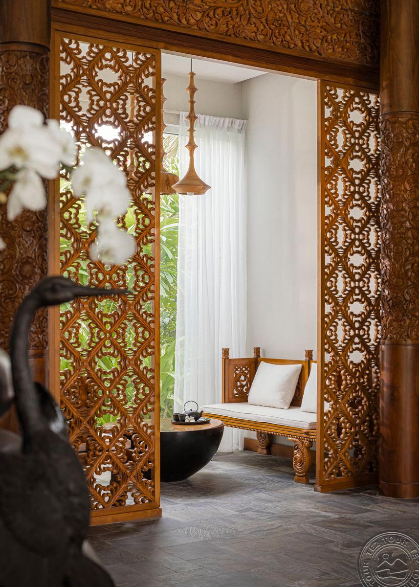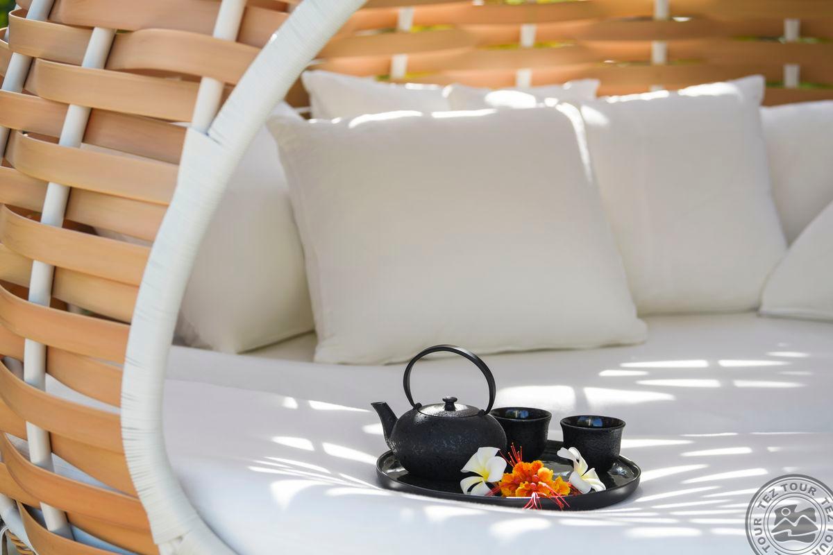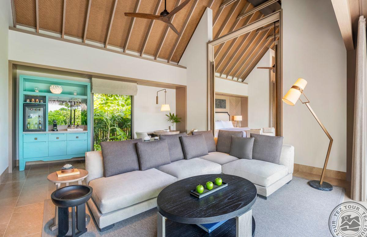 15 Grand Beach Villa with Pool (276-286 м2; макс. 3 или 2+2 чел.). Береговые виллы с прямым выходом на пляж. Спальня с кроватью king-size (3 номера имеют раздельные кровати twin), гостиная, гардеробная, ванная комната с ванной и душем, душ на открытом воздухе. Терраса с частным бассейном (12 х 4 м), обеденный павильон, диван-качели.