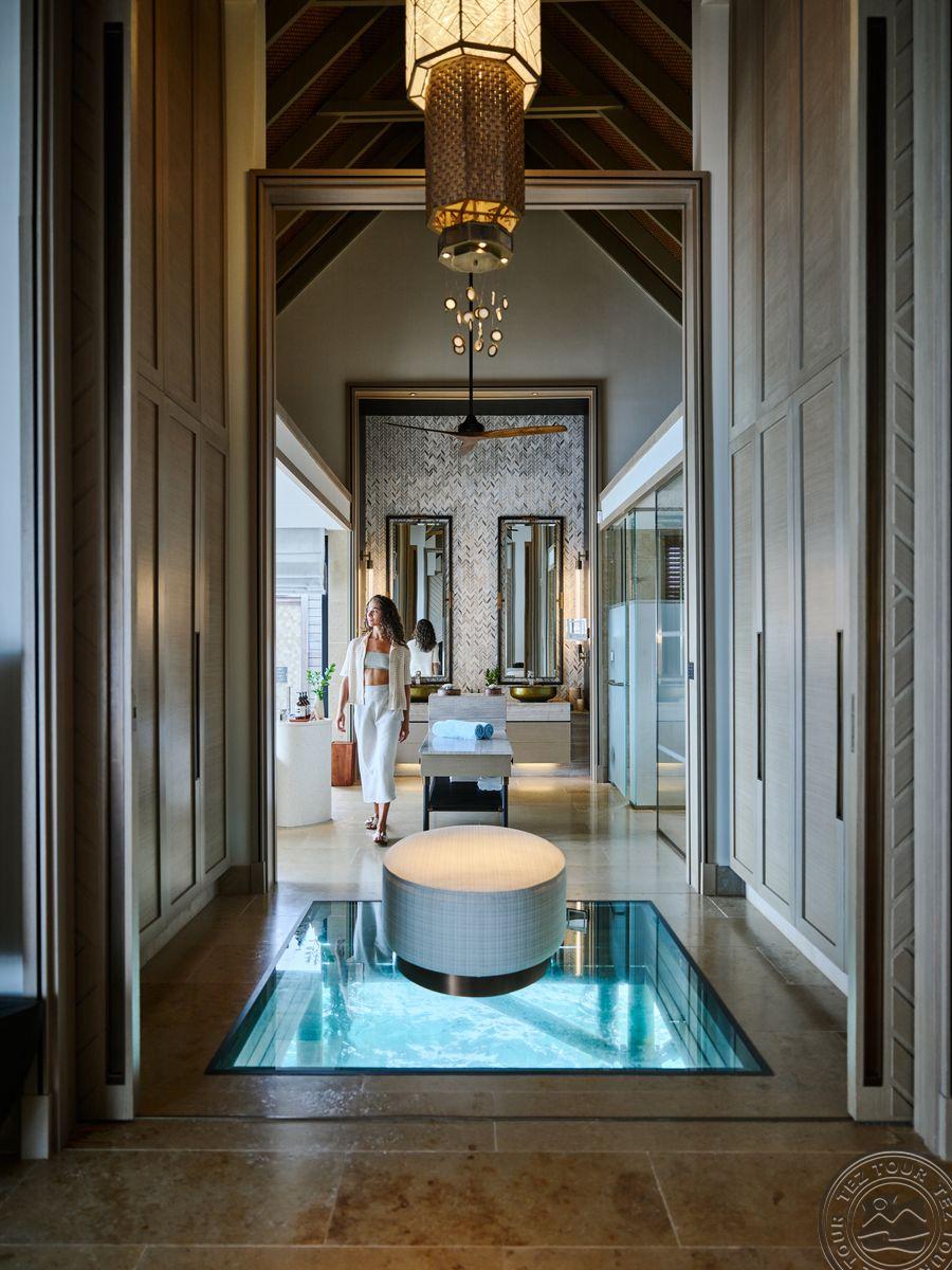 25 Grand Overwater Villa with Pool (334-346 м2; макс. 3 или 2+2 чел.). Водные виллы. Спальня с кроватью king-size (3 номера имеют раздельные кровати twin), гардеробная, гостиная, ванная комната с ванной и душем, душ на открытом воздухе. Терраса с частным бассейном (12 х 4 м) и зоной отдыха, надводный гамак.