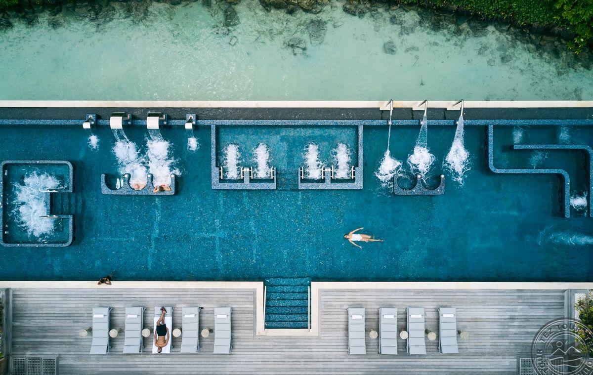 25 Overwater Villa with Pool (283-293 м2; макс. 3 или 2+2 чел.). Водные виллы. Спальня с кроватью king-size (3 номера имеют раздельные кровати twin), гардеробная, ванная комната с ванной и душем, душ на открытом воздухе. Терраса с частным бассейном (12 х 4 м) и обеденным павильоном, диван-качели, надводный гамак.