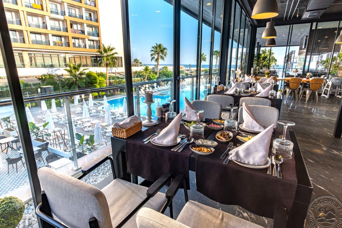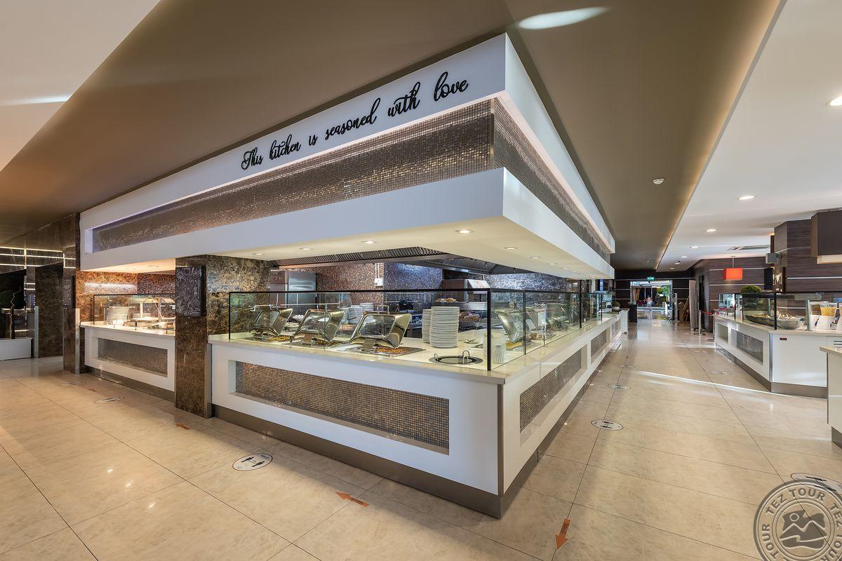Территория:> рестораны: 1 (основной, есть диетический стол) бары: 5 крытые бассейны: 1 (с подогревом) бассейны: 3 (открытые, один из них 16+) спа-центр конференц-залы: 4 (на 20-150 чел.) у бассейна полотенца: бесплатно у бассейна зонтики, шезлонги: бесплатно химчистка (платно) рестораны a la carte: 3 кабинет врача (платно) библиотека кондитерская водные горки: 4 кофе-шоп Wi-Fi бесплатно салон красоты платно Интернет-кафе платно прачечная платно магазины снек-бар (2)